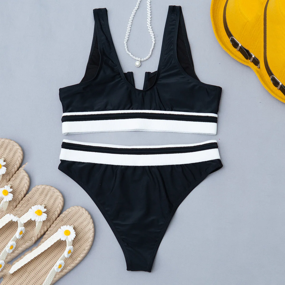 Новинка, сексуальное полосатое бикини с лямкой на шее, 2021, женски...