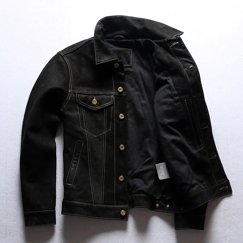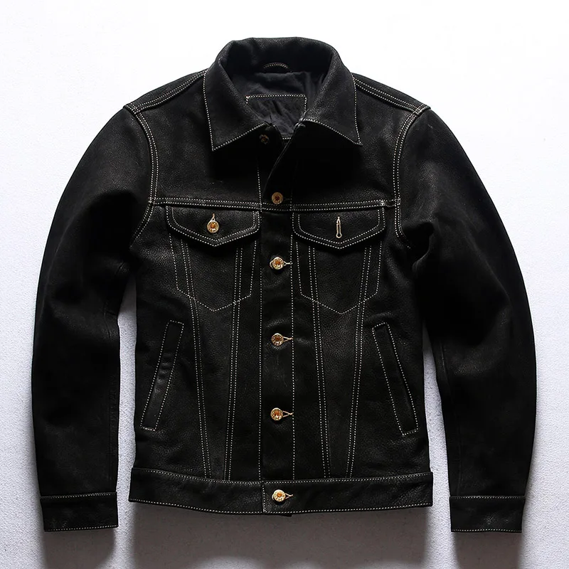 Куртка из натуральной бычьей кожи, Классическая тонкая куртка для е...