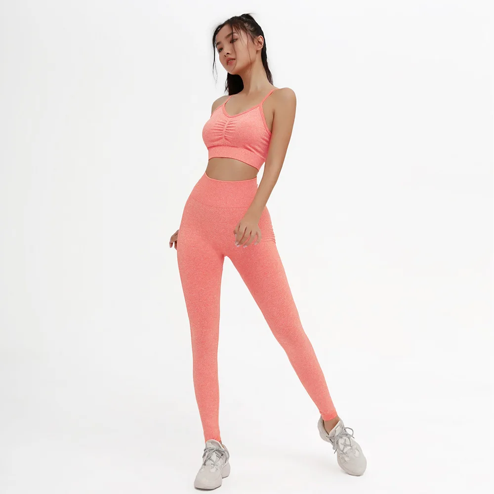 Женский бесшовный комплект для йоги из 2 предметов, одежда для спор...