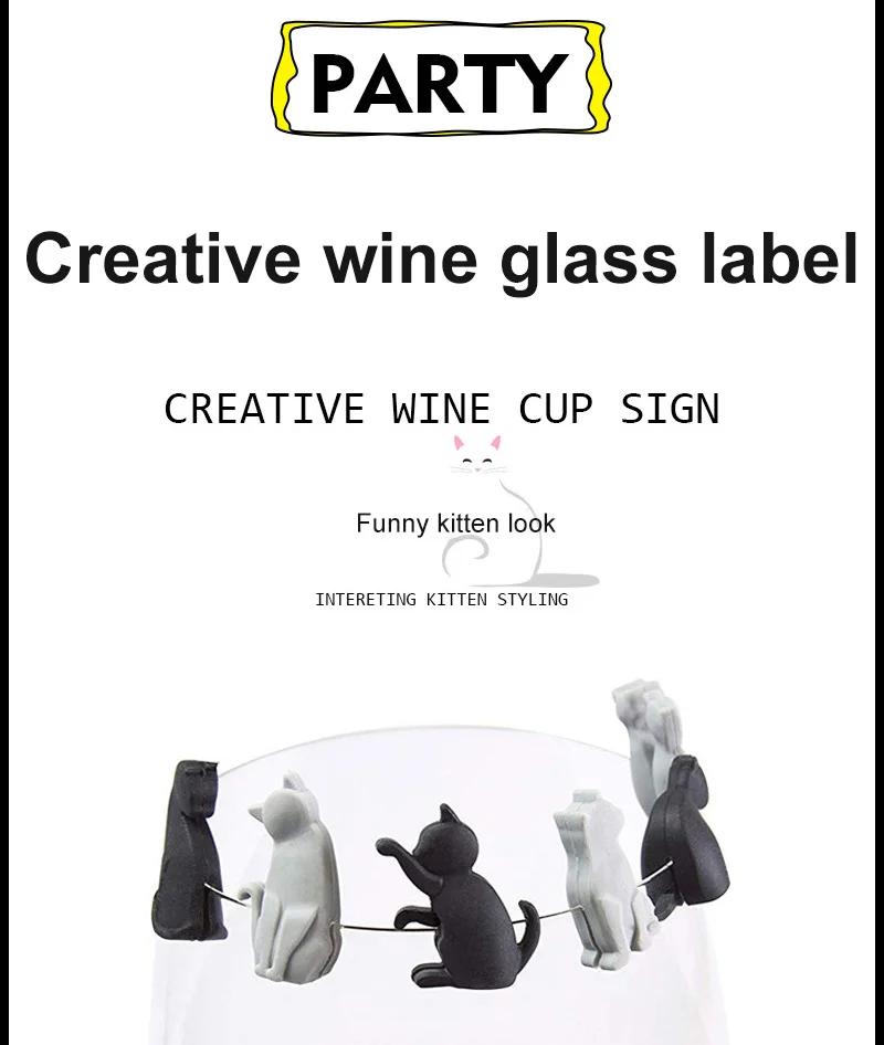 6 шт.компл. силиконовый маркер для бокалов в форме милого кота