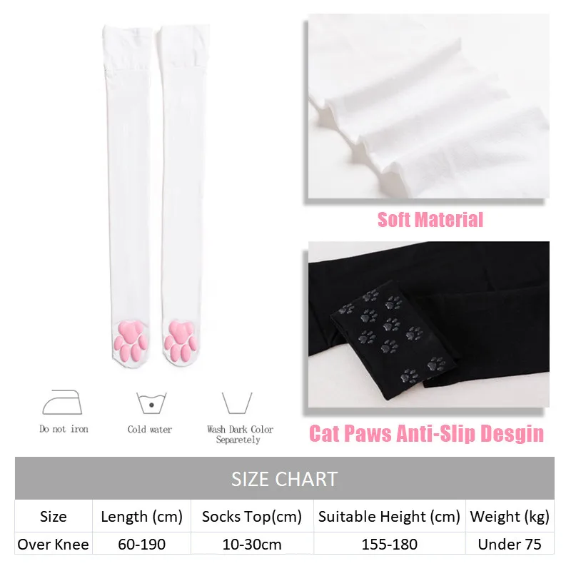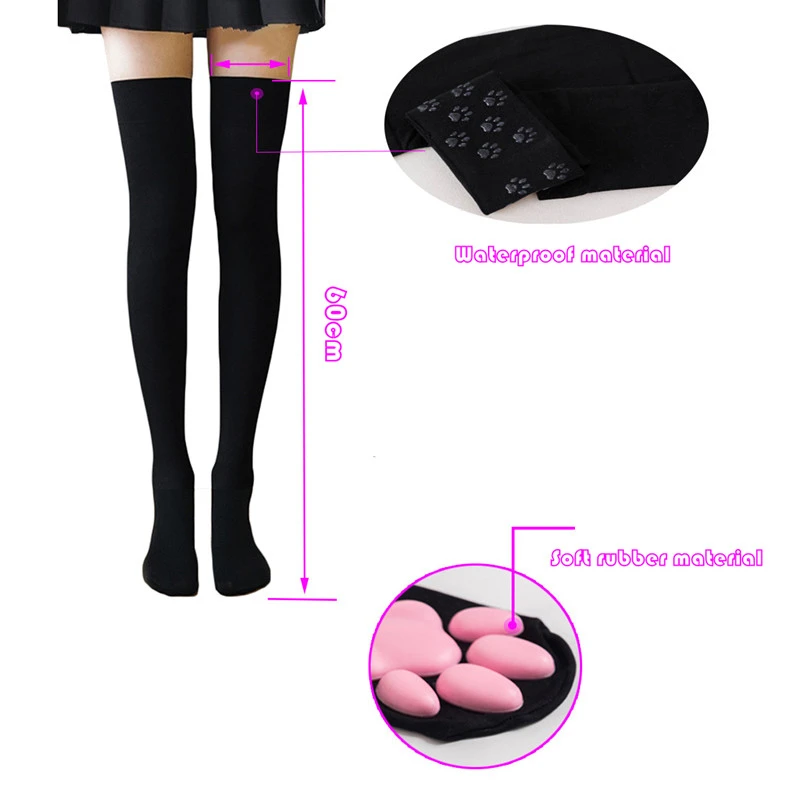 Женские носки в виде кошачьих лап, Чулки с 3D принтом, хлопковые чулки выше колена, привлекательные милые мягкие чулки для косплея
