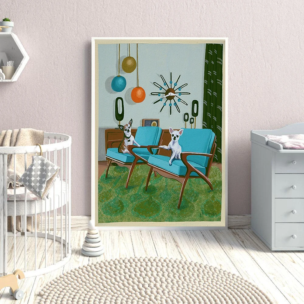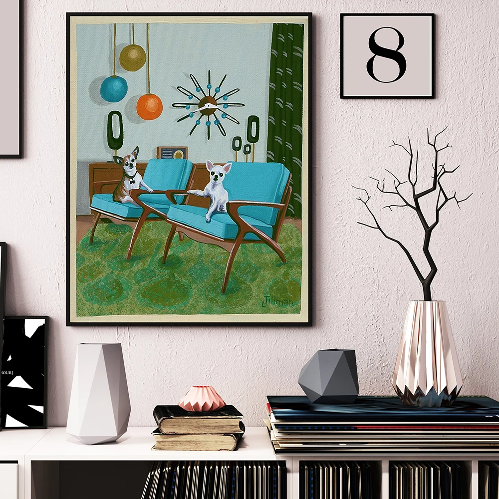 Постер чихуахуа, лимитированный холст, винтажная Оригинальная Живопись, датский стул, принт, любовь, собака, подарок, настенная живопись, Декор для дома