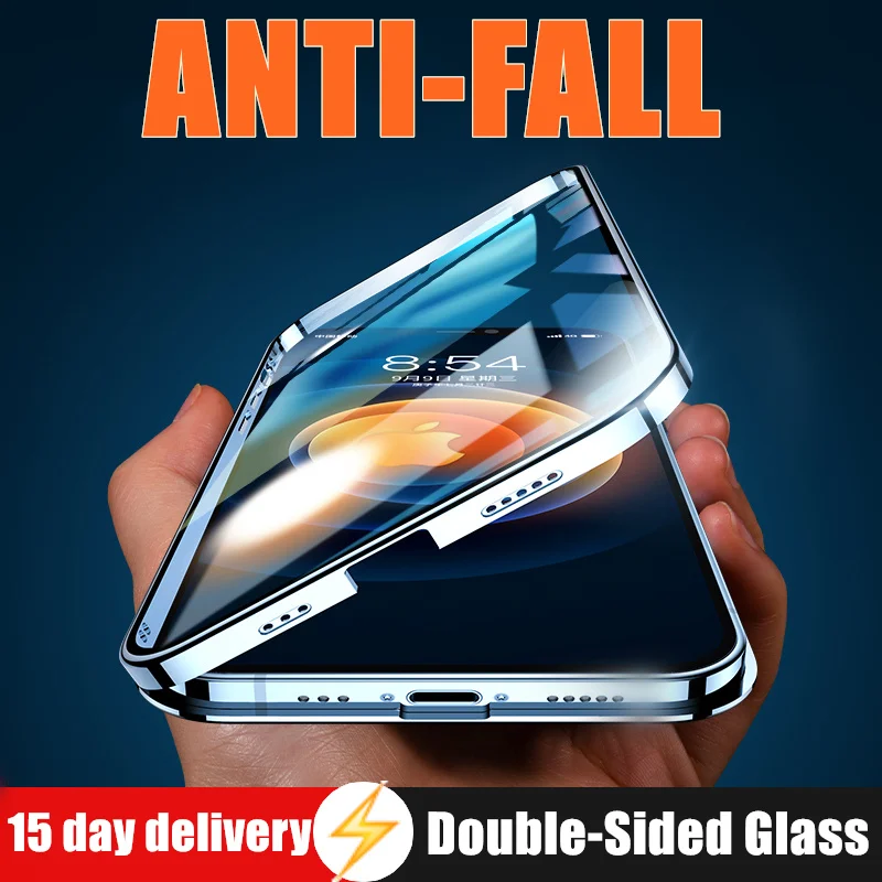 Роскошный 360 металлический магнитный чехол для телефона IPhone 12 11 Pro X XR XS Max двойной стеклянный чехол для IPhone 7 6 8 Plus флип-чехол