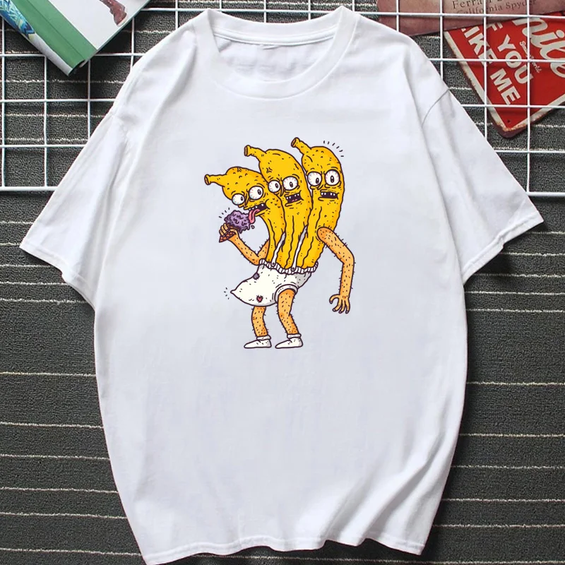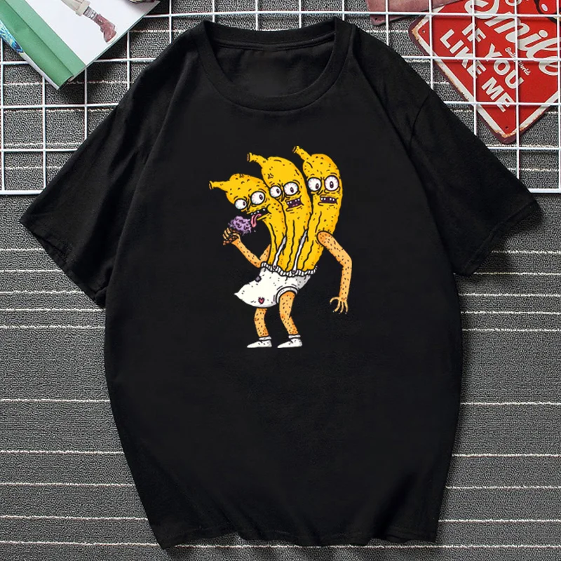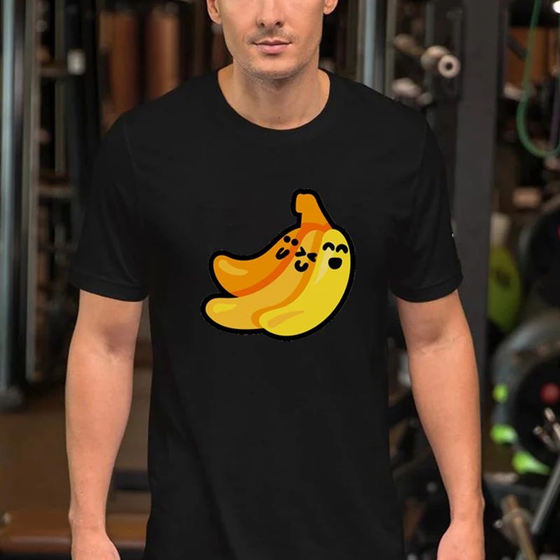 Футболка мужская с забавным принтом три банана, свободная рубашка с коротким рукавом и круглым вырезом, милая мультяшная графика банана, Повседневная летняя