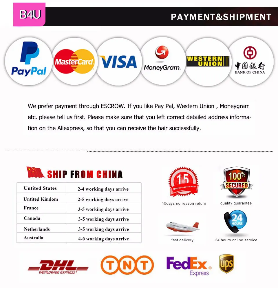 Срок поставки: 5-10 рабочих дней по всему миру (Fedex/DHL/UPS),15-25 рабочих дней (Стандартная доставка Aliexpress)