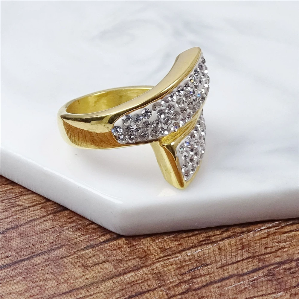 В виде геометрических фигур стразы кольцо ЗолотоЩепка Цвет нержавеющая сталь со льдом, обручальные кольца для женщин, в стиле хип-хоп вечерние ювелирные изделия дропшиппинг