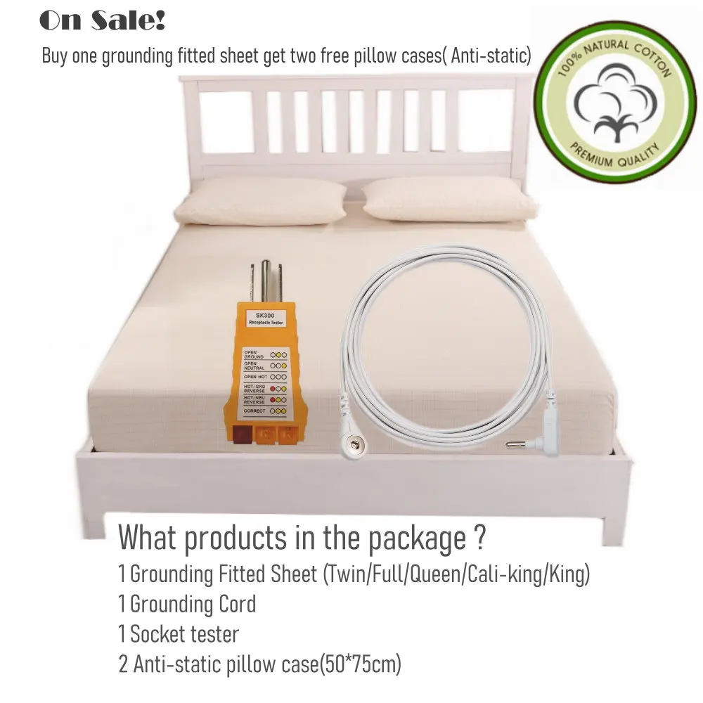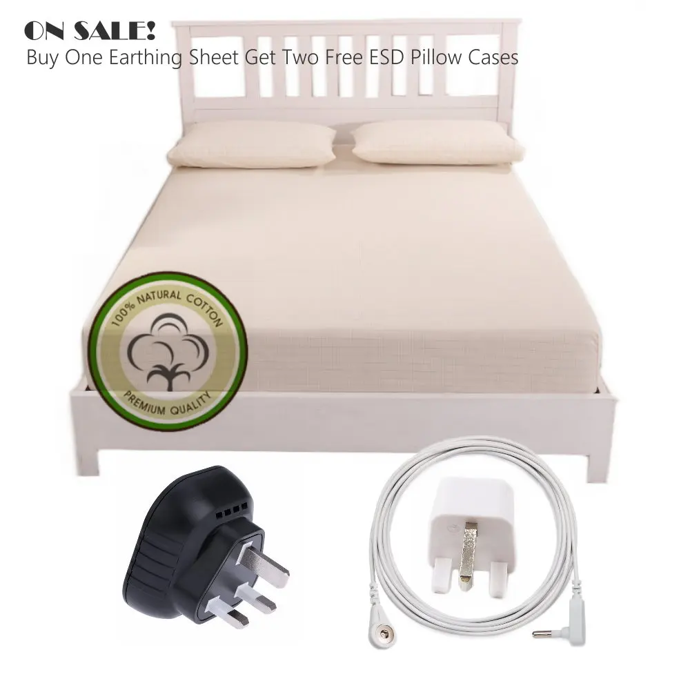 Натяжная простыня Earth с 2 наволочками простыня проводящая Серебристая хлопковая ткань 400TC с заземляющим шнуромПосылка входит: