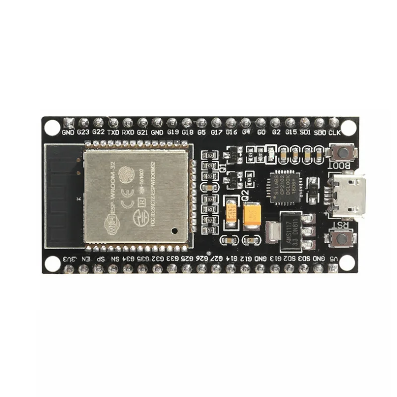 ESP-WROOM-32-это универсальный модуль Wi-Fi + BT + BLE MCU с мощными функциями и широким спектром использования. Он используется для маломощных сенсорных сетей и сложных задач, таких как кодирование голоса, потоковое аудио и декодирование MP3.