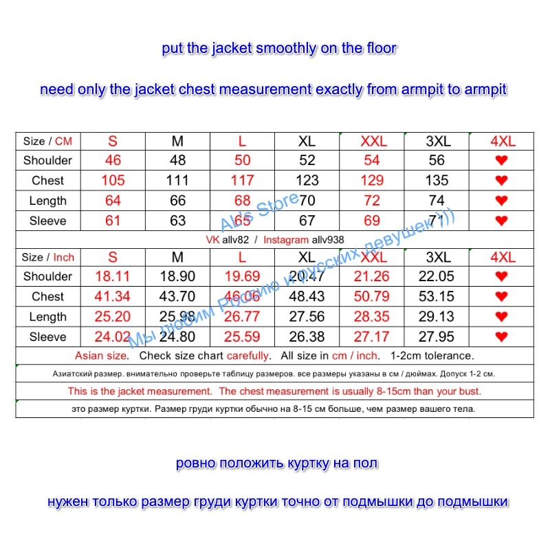 Пожалуйста, измерьте вашу куртку, как показано ниже