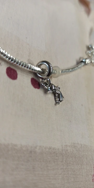 Livraison très rapide du charm. Il est très très beau. La qualité est au rendez-vous. Je ne regrette pas mon achat. Je ne sais pas si il s'agit vraiment d'argent mais en tout cas il a l'air solide et ne noircit pas. A voir dans le temps. Je vais en recommander d'autres chez le même vendeur. Je recommande les yeux fermés.