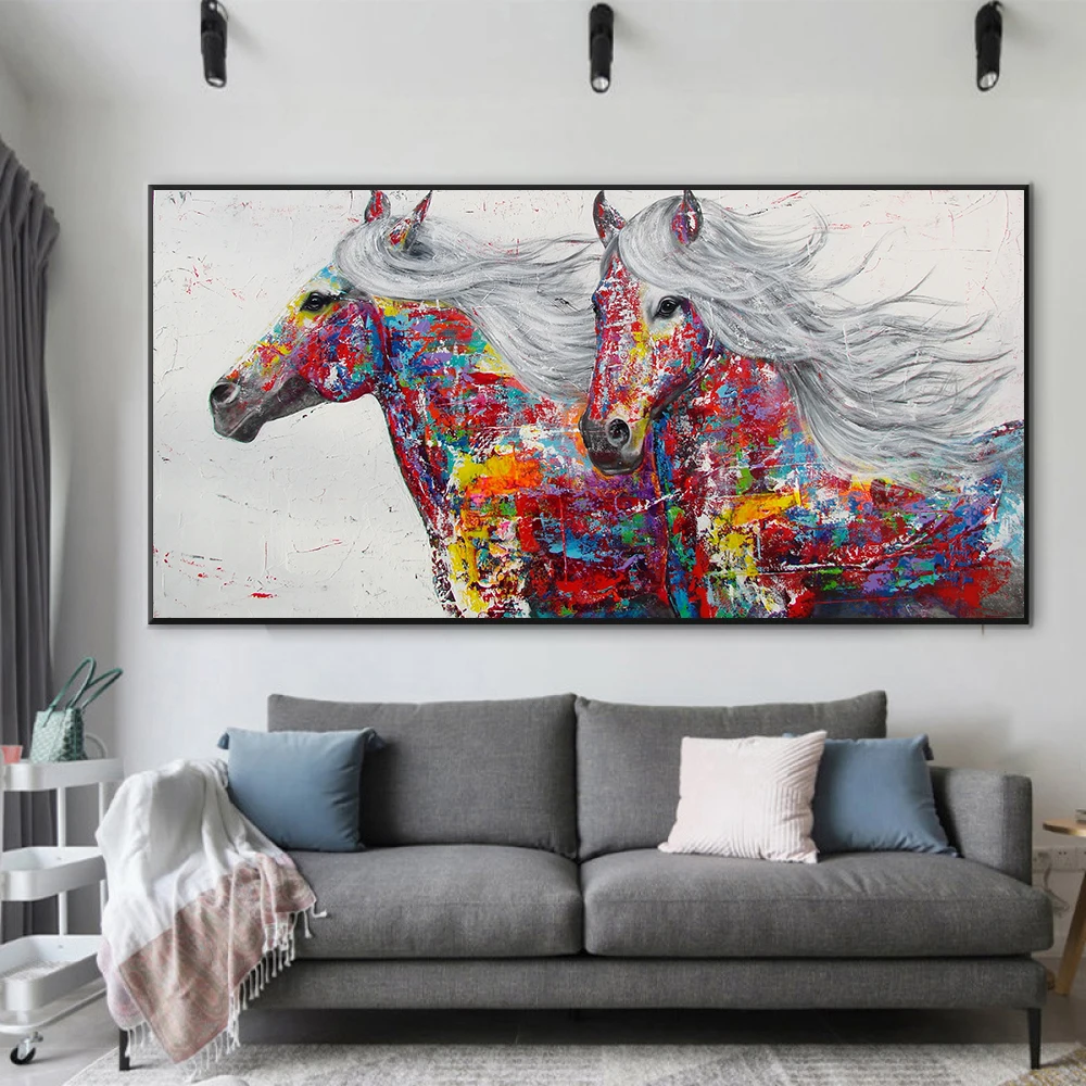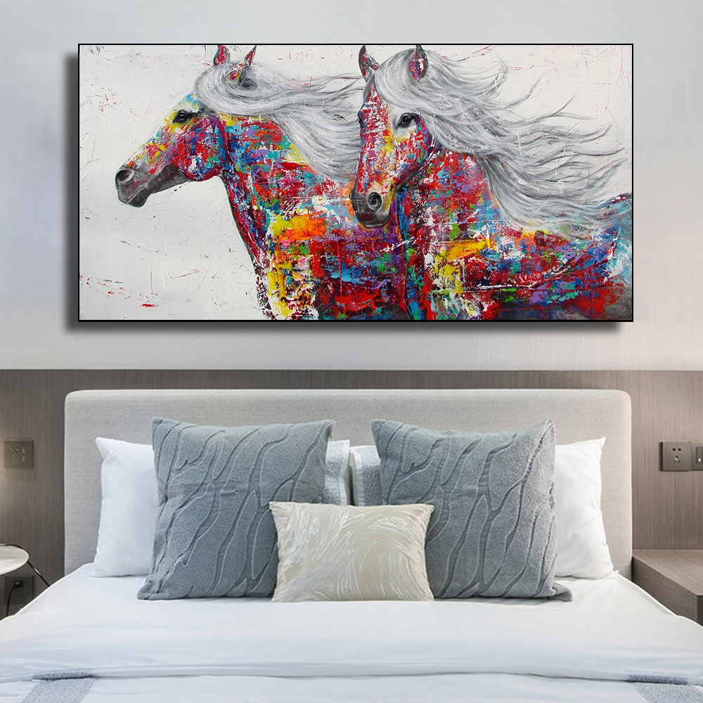 Абстрактная Красочная картина Два бега, граффити на холсте, печать, настенные картины для гостиной, квадратные картины, домашний декор
