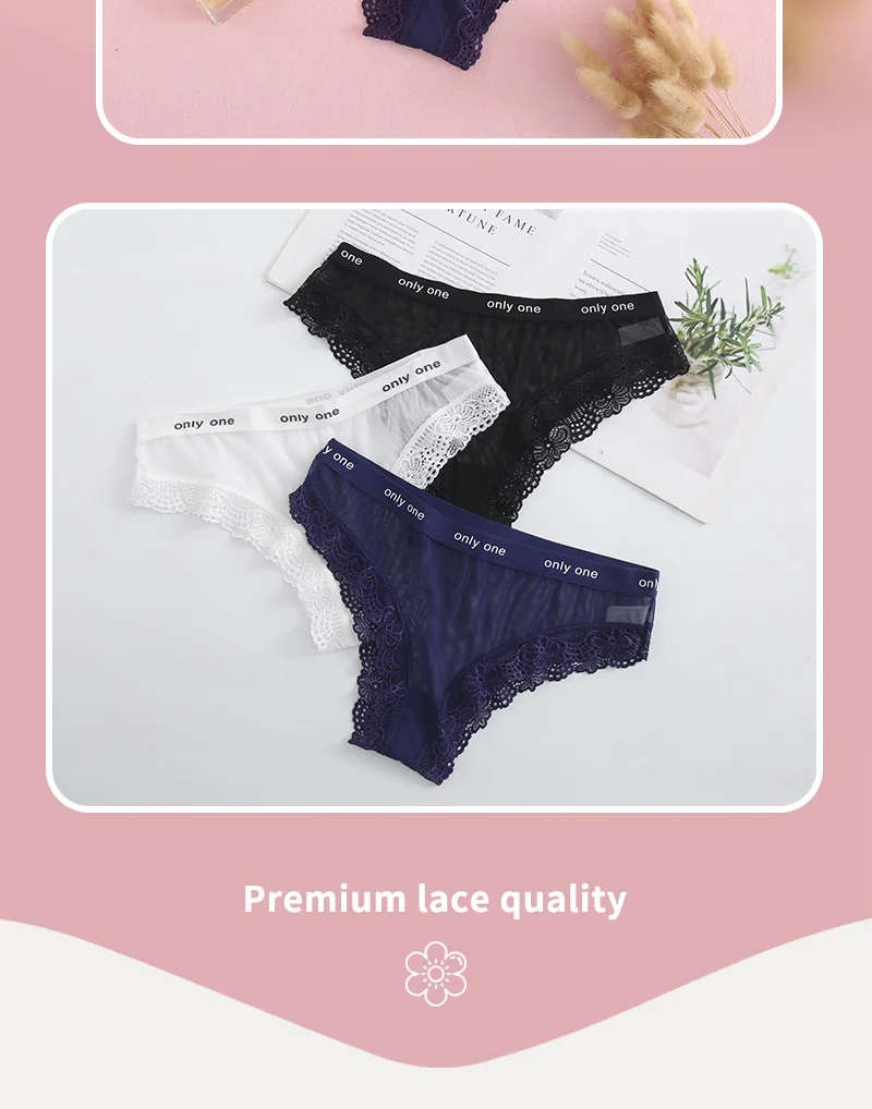 Трусы женские кружевные, мягкие, дышащие, с низкой посадкой, 3 шт.