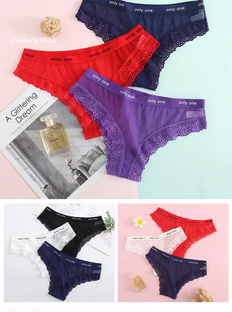 3 шт в упаковке сексуальные кружевные трусики для женщин нижнее бел...