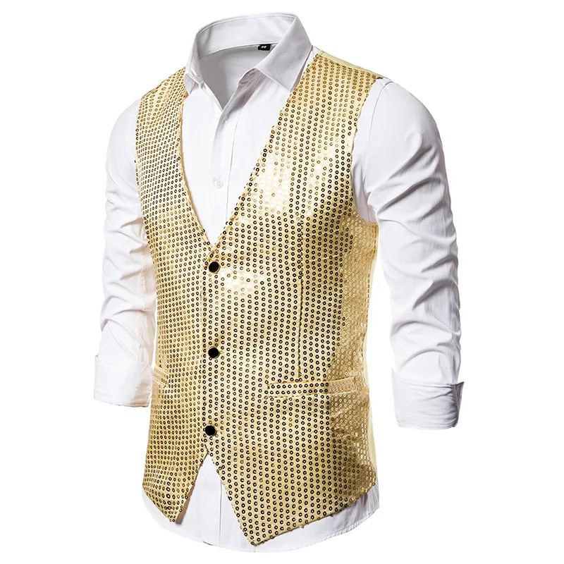3 пуговицы шикарные блестки джентльмен мужской блейзер VestT uxedo ...