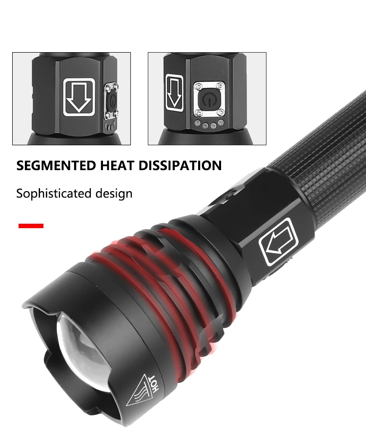 ★Регулируемый зум --- телескопический зум-фонарик позволяет выбрать фокус между точечным и прожекторным светом.★Супер яркий и несколько режимов --- с использованием высококачественного светодиодный чипа XHP90.2, ультра яркий, выберите различные огни в разных случаях.★Перезаряжаемый USB --- питание от перезаряжаемых батарей, оснащенных встроенным usb-портом для зарядки плюс usb-кабелем, с индикатором заряда батареи, так что вы можете удобно заряжать ваш светильник, когда вам нужно, хватает до 7 часов, время зарядки 7-8 часов.★Водонепроницаемые фонарики --- водостойкие и предназначены для использования в условиях сильного дождя, но не используйте их во время дайвинга. Прочный алюминиевый корпус и ударопрочность выдерживают грубую обработку, надежно освещают при замерзающих температурах-до-40 градусов/-40 градусов.★Невероятно надежный --- противоскользящий дизайн корпуса фонарика; Компактный, ударопрочный и простой в использовании. Профессиональные светодиодные фонари для повседневного использования.