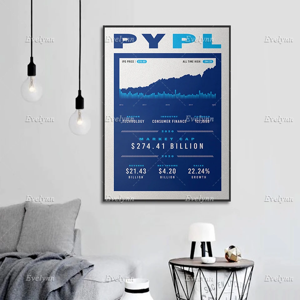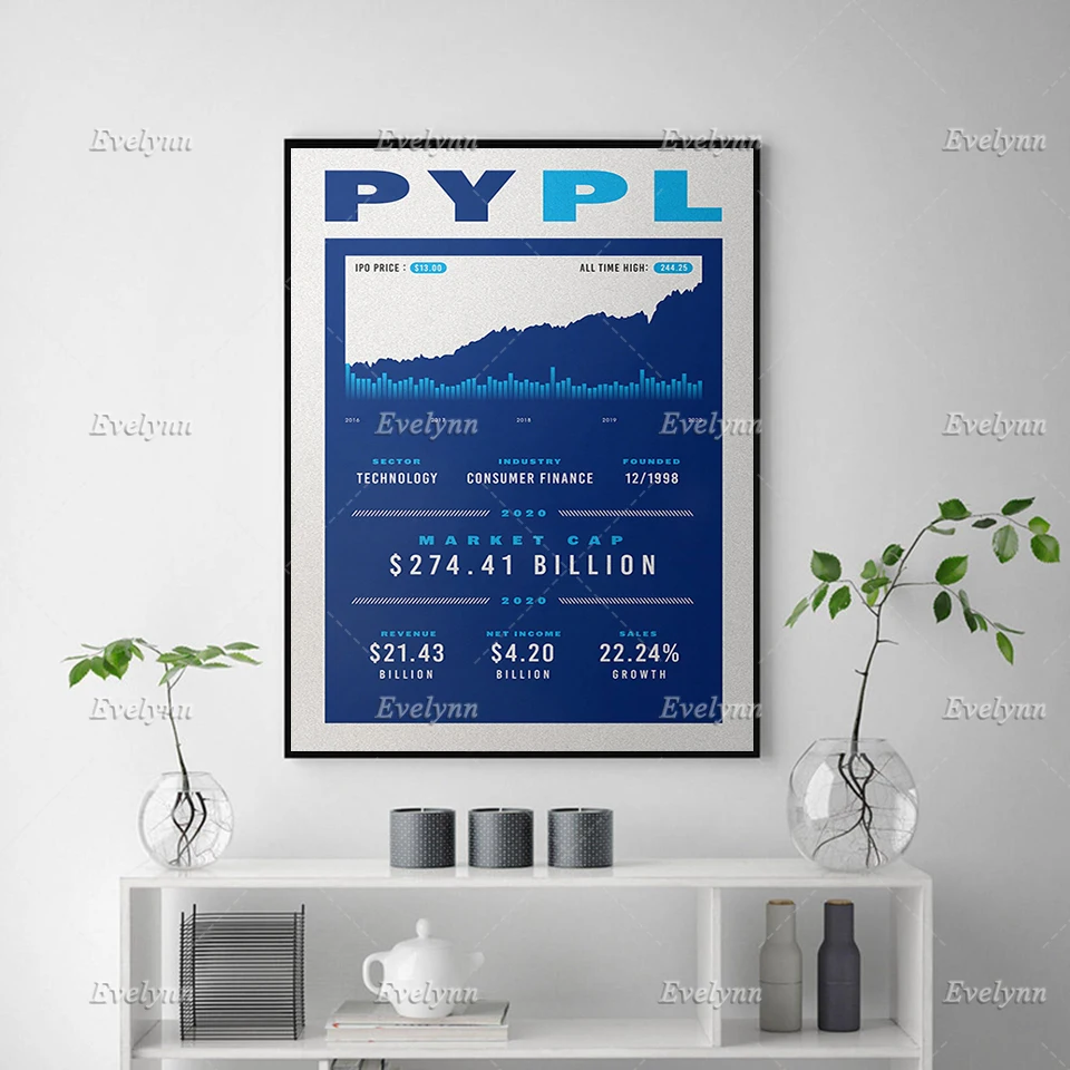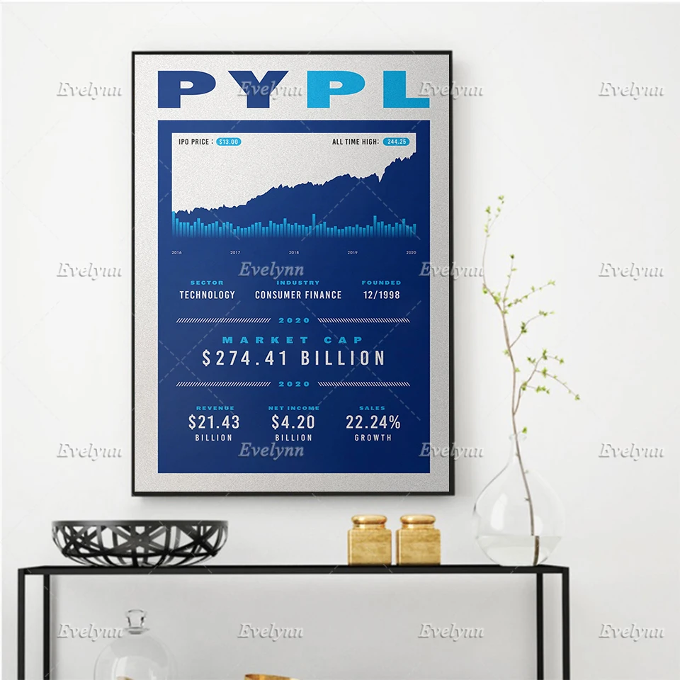 Pay Pal-акции, раскрашенные постеры и принты, холст, стоковый рынок, настенные художественные картины для гостиной, домашний декор, плавающая рамка