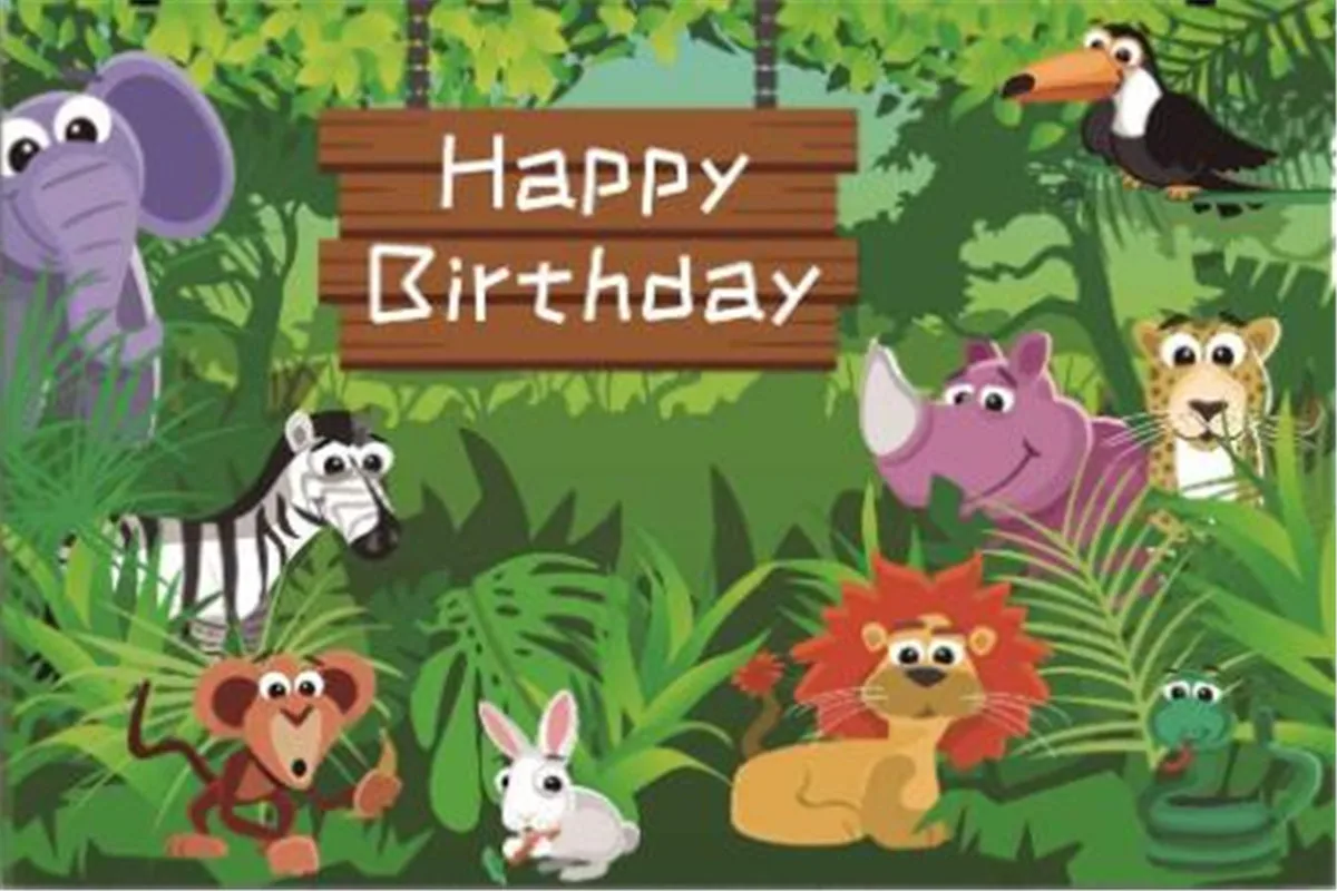 Фон для фотосъемки с изображением диких животных на день рождения, слона, обезьяны, тигра, Льва, джунглей