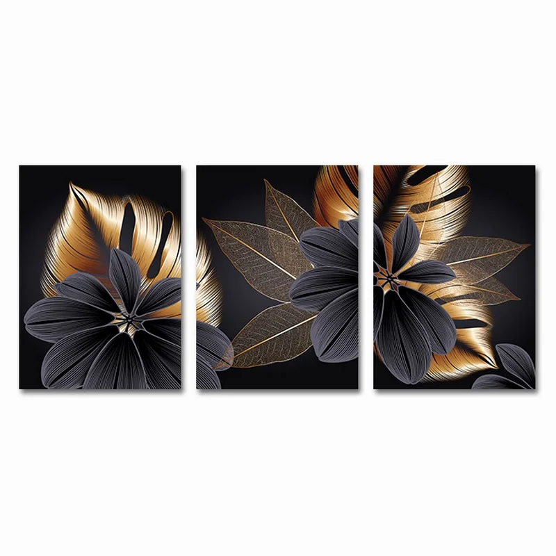 3 шт. Современный абстрактный постер на холсте с изображением листьев растений, настенная живопись, Черное золото, картины в скандинавском стиле, украшение для гостиной и дома