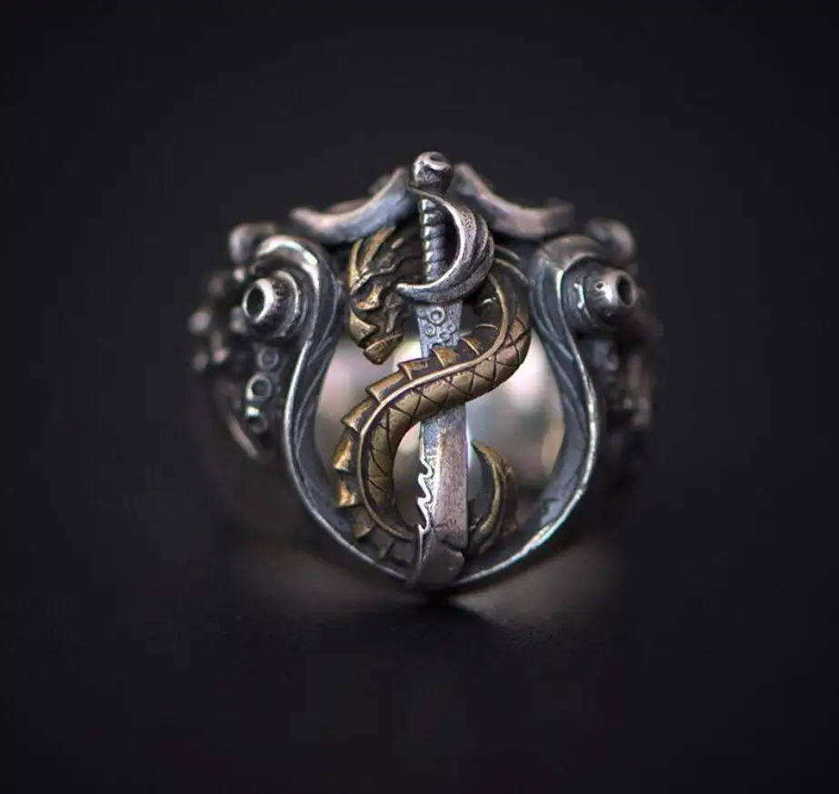 Мужское кольцо, модное кольцо в форме ножа, кольцо с драконом, обмотка, классическое модное ювелирное изделие, подарок