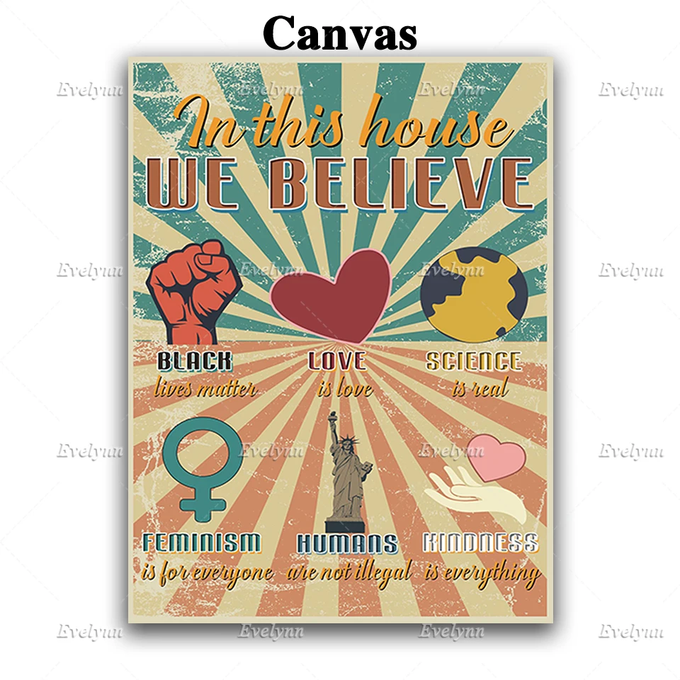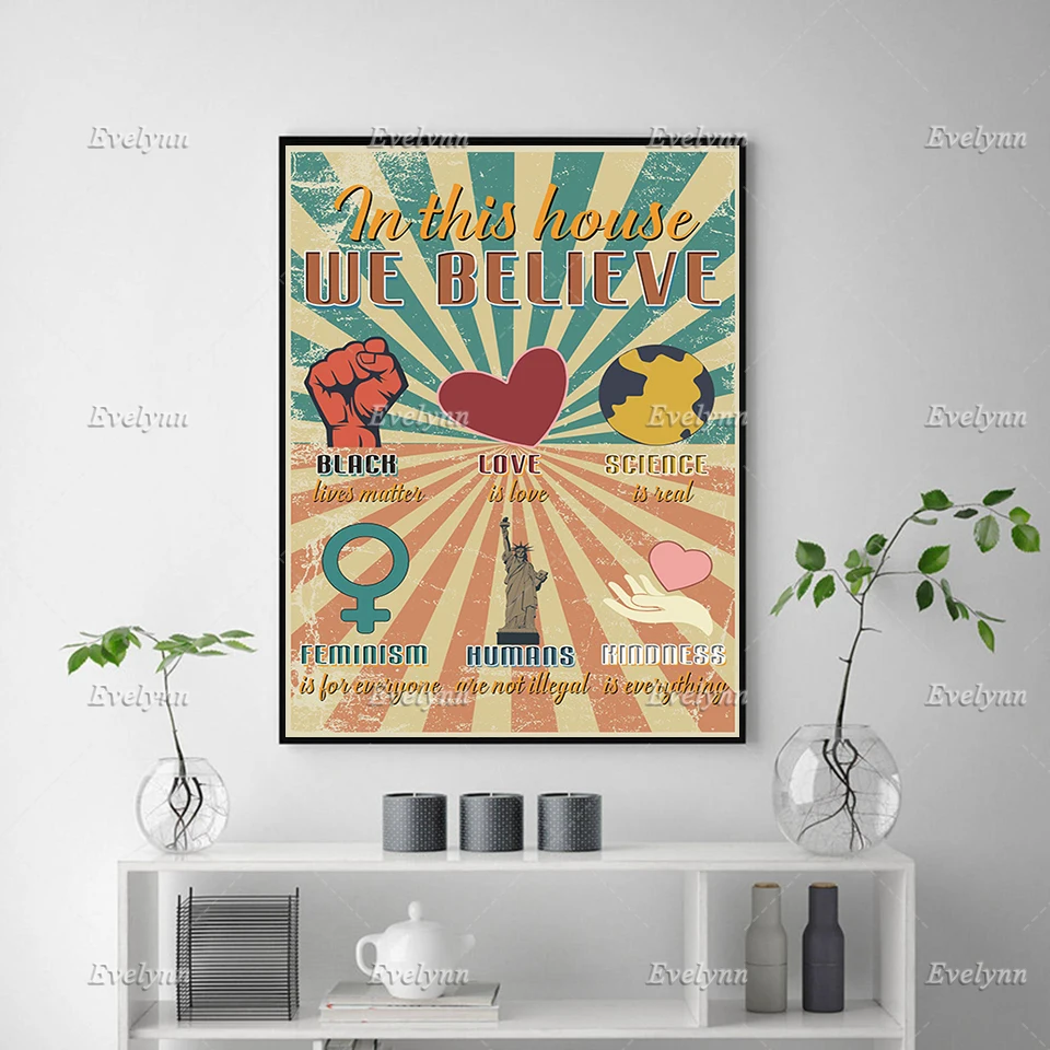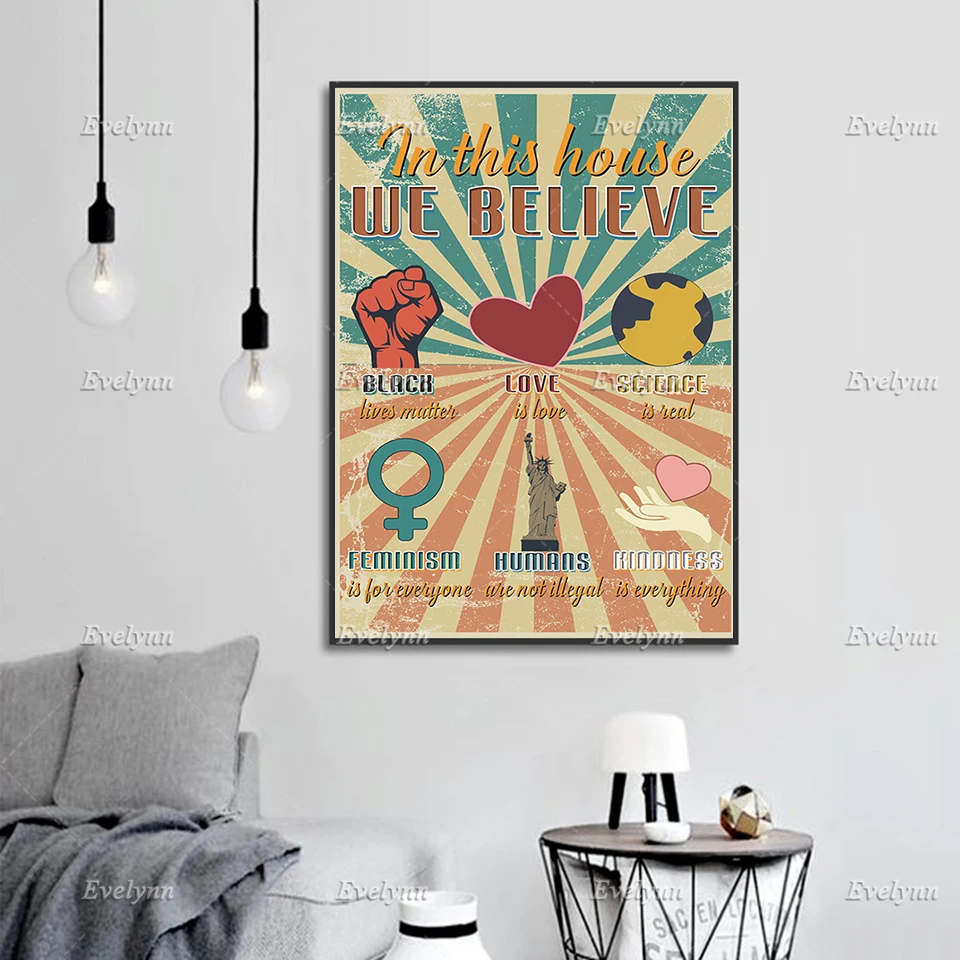 В этом доме мы верим, плакат, украшение на стену гостиной, украшение на холст, уникальный подарок, плавающая рамка