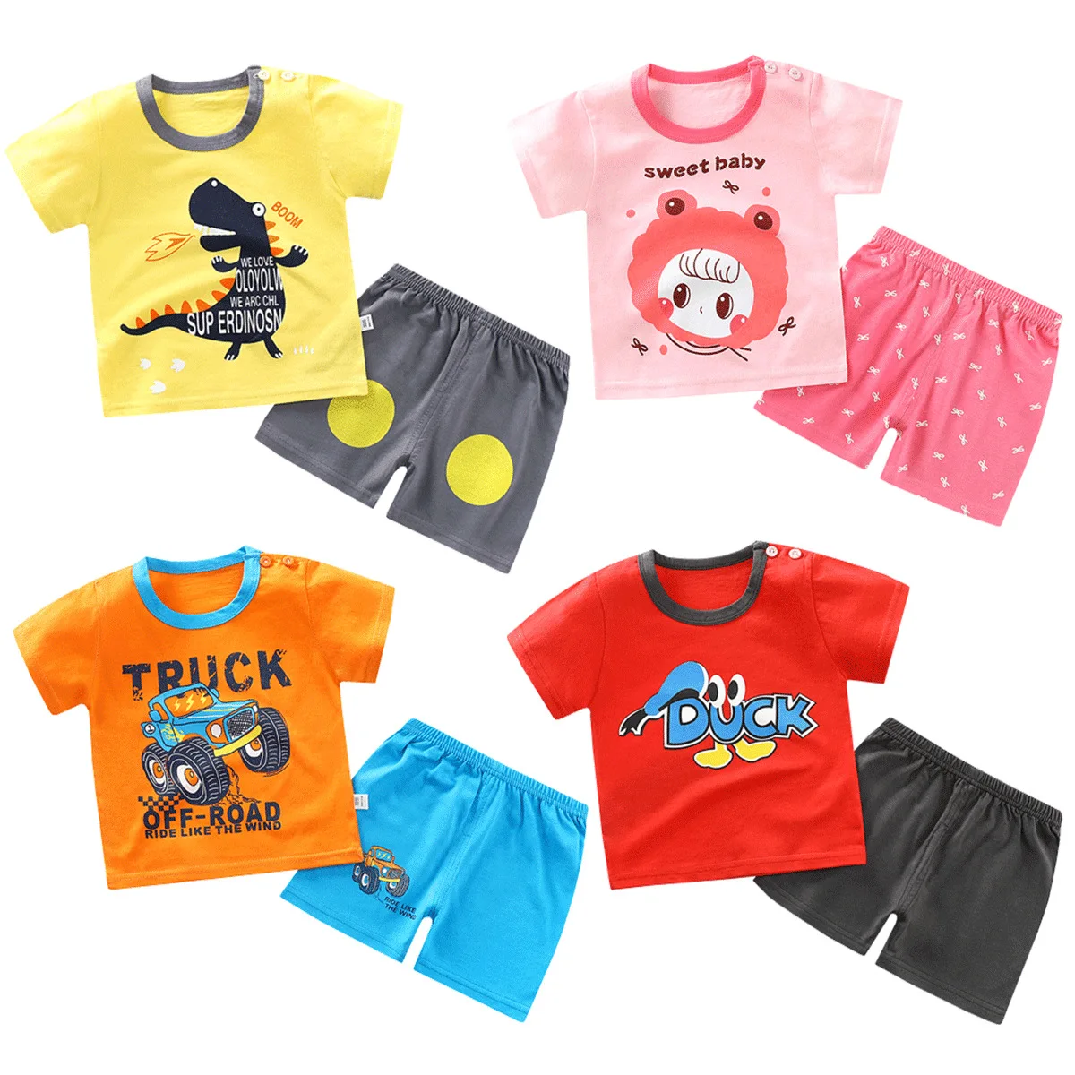 Летний комплект одежды для маленьких мальчиков от 1 до 10 лет, футболка с короткими рукавами и принтом динозавра, шорты пляжная одежда для девочек