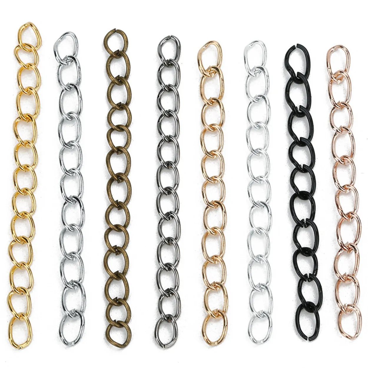 Цепочка удлинительная металлическая, золотистая, серебристая, бронзовая, 100 шт., 50 мм х 3 мм, фурнитура для рукоделия