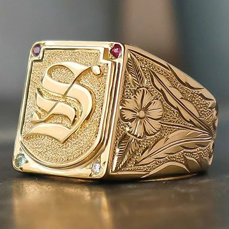 Роскошные кольца для мужчин золотого цвета с резьбой буквой S и узором, с белым и красным фианитом, инкрустация камнем, модные ювелирные изделия, подарок на свадьбу, помолвку, вечеринку