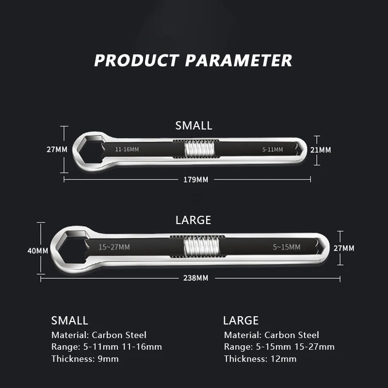 Регулируемый шестигранный ключ Torx, гаечный ключ из углеродистой стали, с двумя головками, универсальный ручной инструмент для ремонта, 5-27 мм