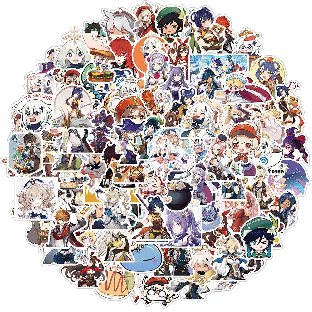 Наклейки Genshin с героями мультфильмов, стикеры сделай сам для сноуборда, ноутбука, багажа, водонепроницаемые стикеры в стиле граффити с героями мультфильмов, 103050100 шт.