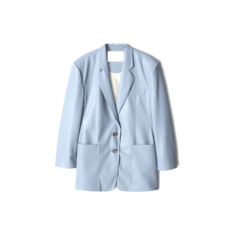 Женский кожаный блейзер DEAT, черный свободный пиджак с отложным воротником и длинным рукавом, весна-осень 2021 3D01666