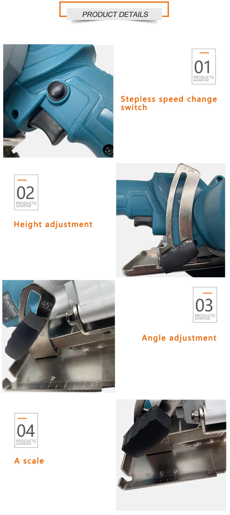 Циркулярная пила, бесщеточная, 21 в, 5 дюймов, литиевая батарея большой емкости, совместимая с аккумулятором makita18v