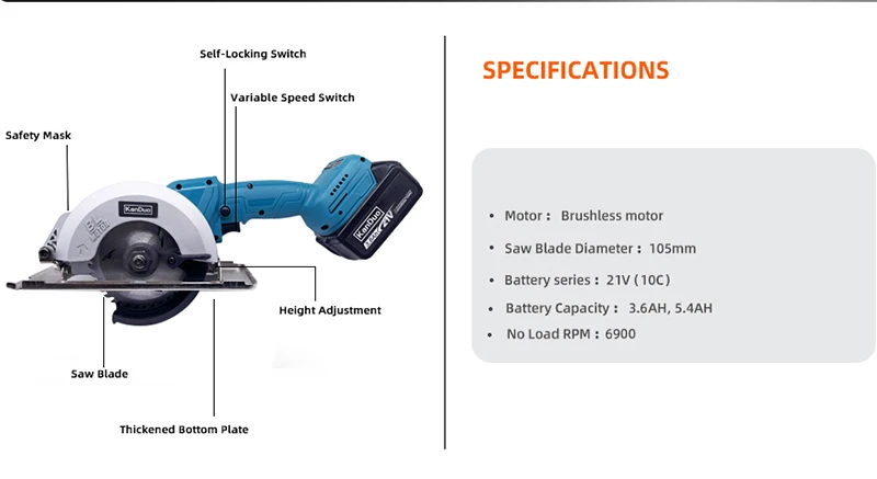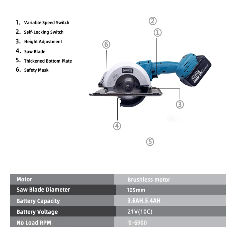 Циркулярная Пила KANDUO 21 в, угловая цепная пила 3 в 1, бесщеточны...