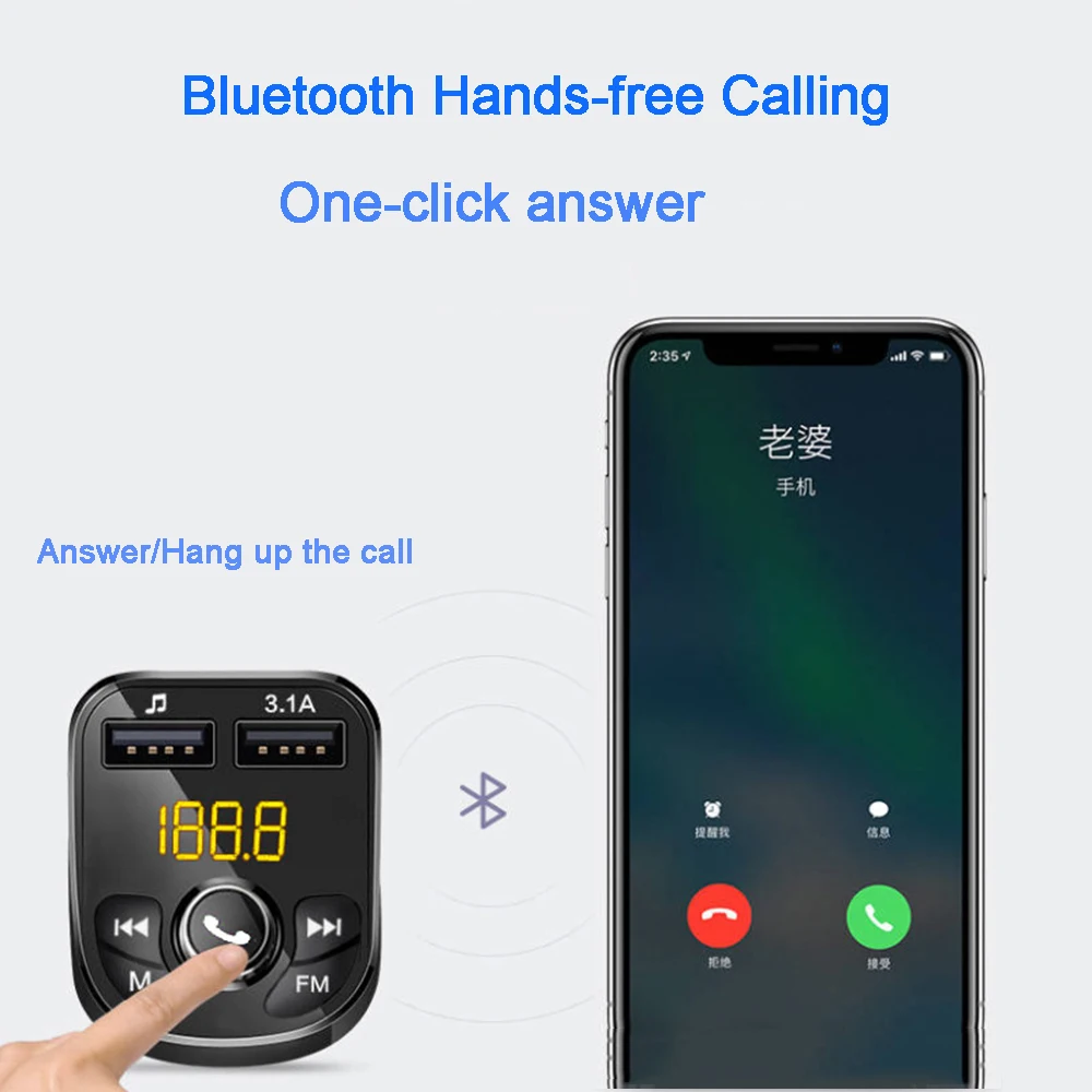 Feature 7Stereo Bluetooth-Compatible 5.0 FM Transmiter Double USB Phone charger