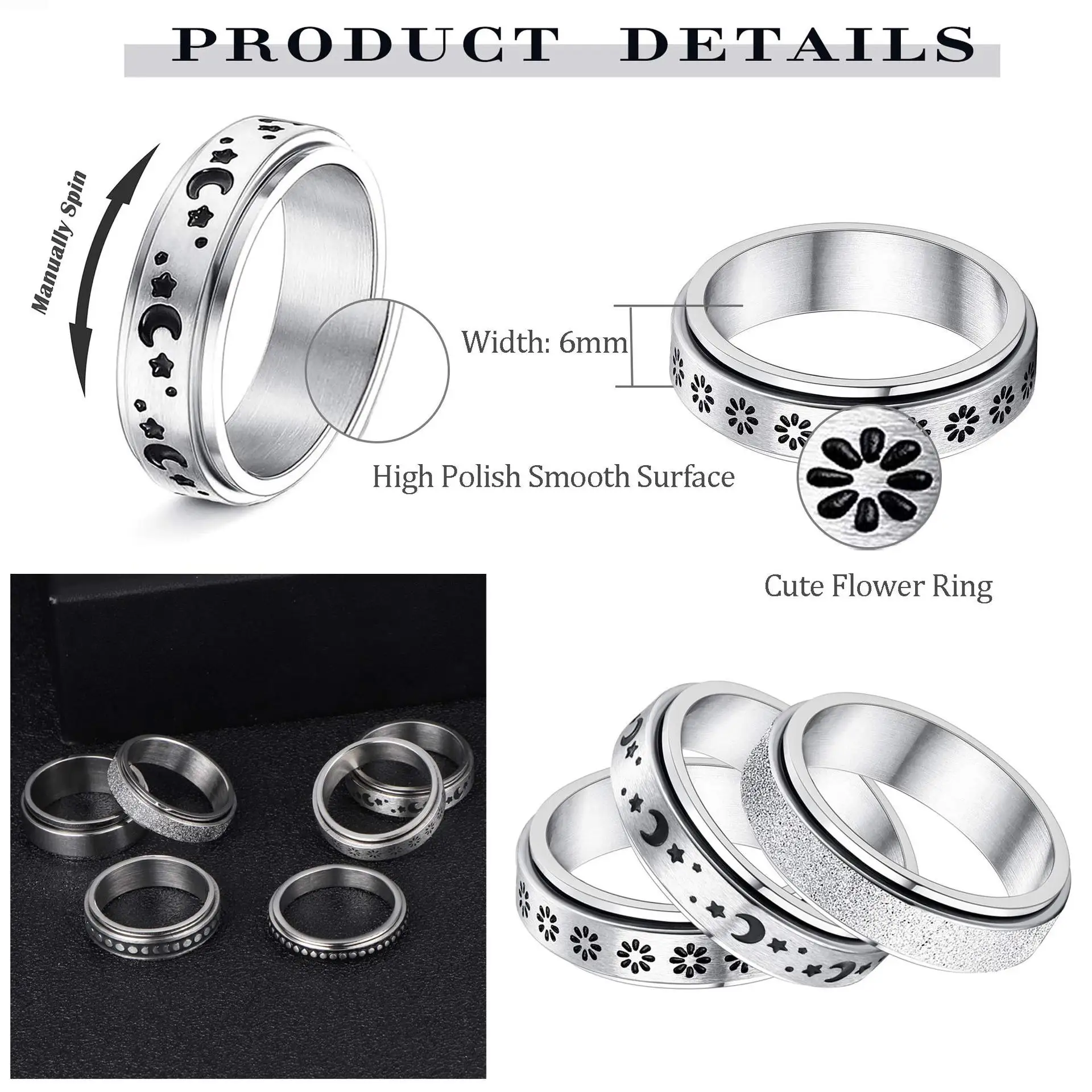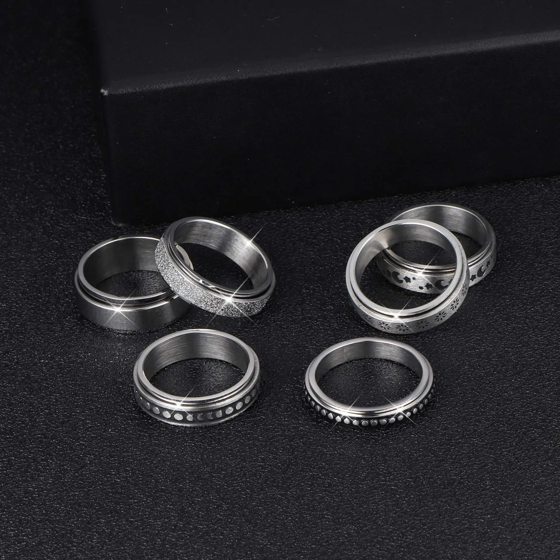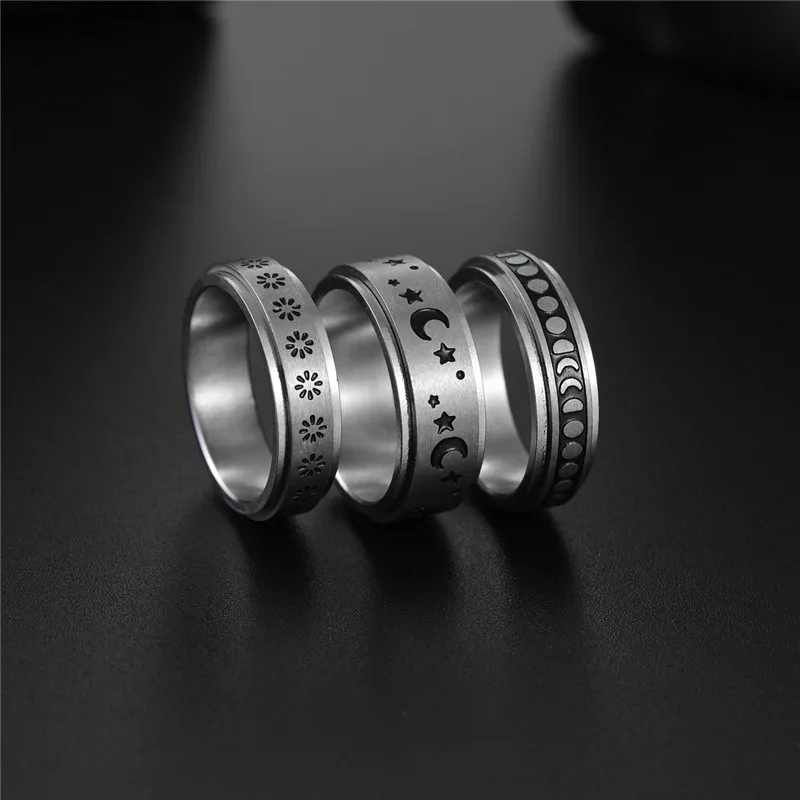 Вертушка кольца для мужчин и женщин нержавеющая сталь Fidget Band кольца набор Sun Moon Star медитация декомпрессия кольца Прямая поставка Ювелирные изделия