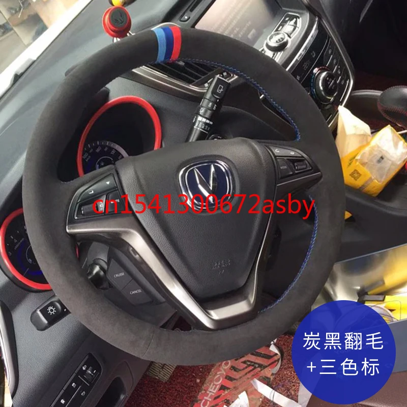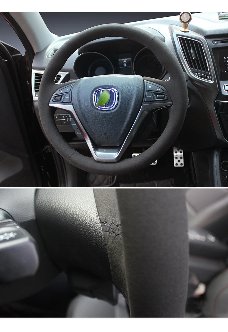 Чехол на руль для автомобиля Changan CS75 PLUS CS55plus Eado PLUS Blue Whale NE, черная замша