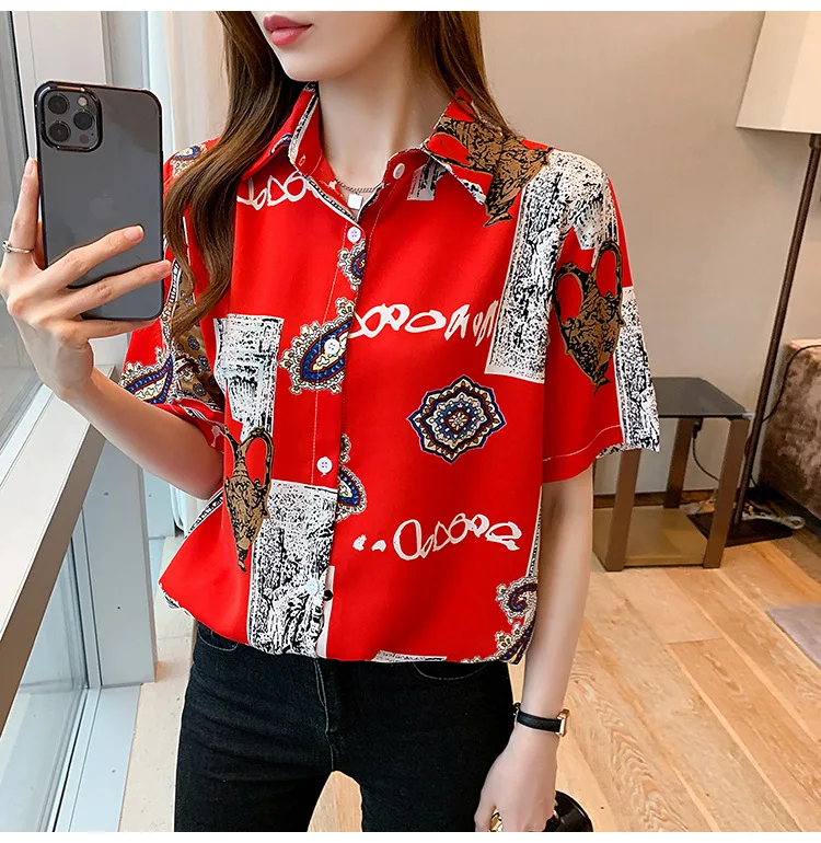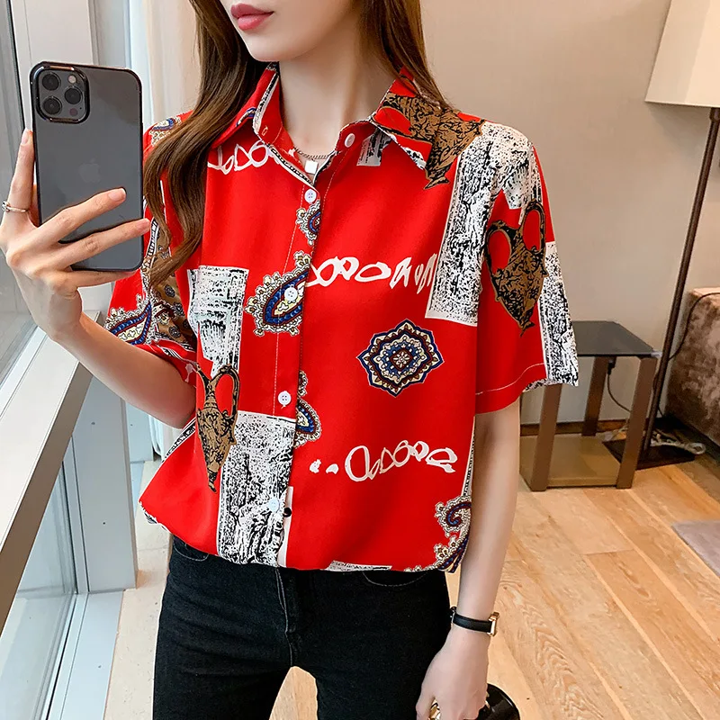 2021 Новая модная Темпераментная Женская рубашка с принтом корейски...