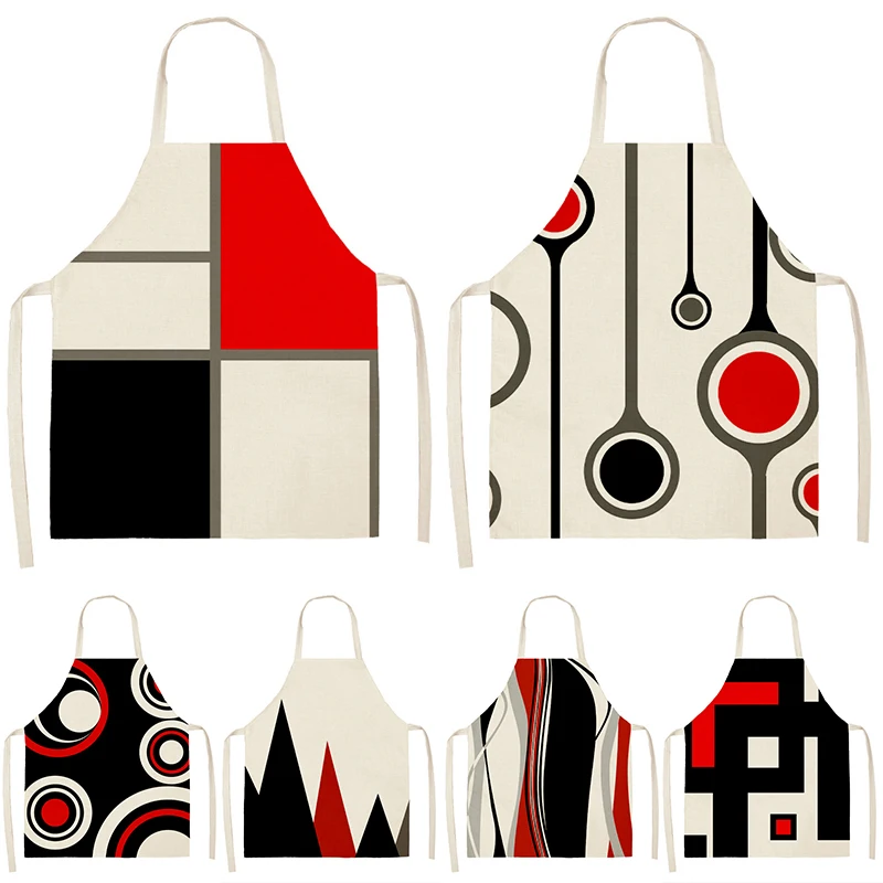 Геометрический рисунок, кухонные безрукавные фартуки, хлопковые льняные нагрудники для женщин, для уборки дома
