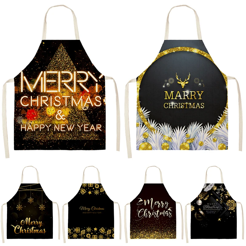 Кухонный Фартук, черные хлопково-льняные фартуки с принтом рождеств...