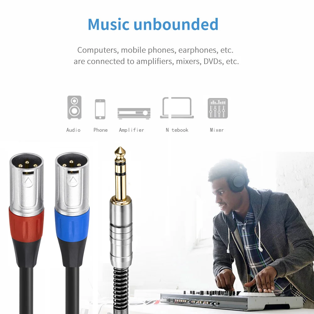Описание1, длина доступна: полная длина: 1 м; Длина кабеля ветки: около 50 см каждая сторона2. Цвет: черный3, Тип: 6,35 мм стерео Aux Jack с двойным XLR Мужской кабель4, этот кабель идеально подходит для подключения цифрового медиаплеера или аналогичной dedice для профессионального аудио оборудования, он отлично работает с 6,35 мм устройств в тех случаях, когда вам нужно подключить к ним микшерный пульт5, фольга + внутренний Плетеный экранированный + OFC медный сердечник с гибкой резиной для лучшей производительности и более длительного срока службы6. Название бренда: Bochara7, диаметр кабеля: около 6 мм (OD 6,0)Внимание: этот кабель не используется для подключения двух микрофонов