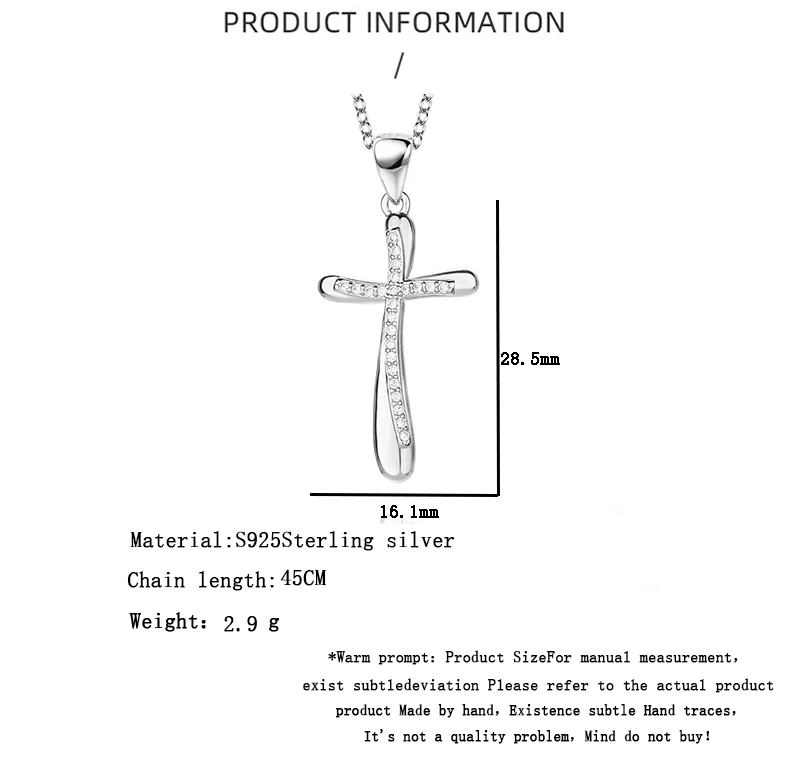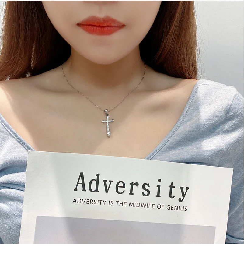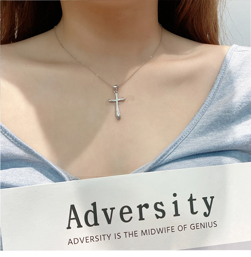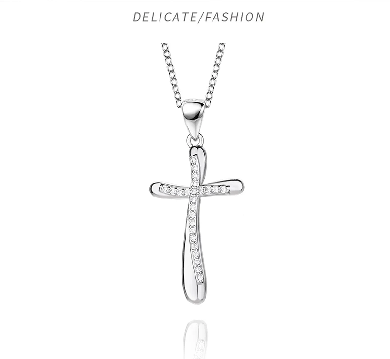 Женское ожерелье с крестом из серебра 925 пробы, Классическая Подвеска-цепочка до ключиц, христианские верующие в Иисусе