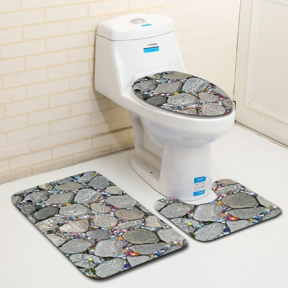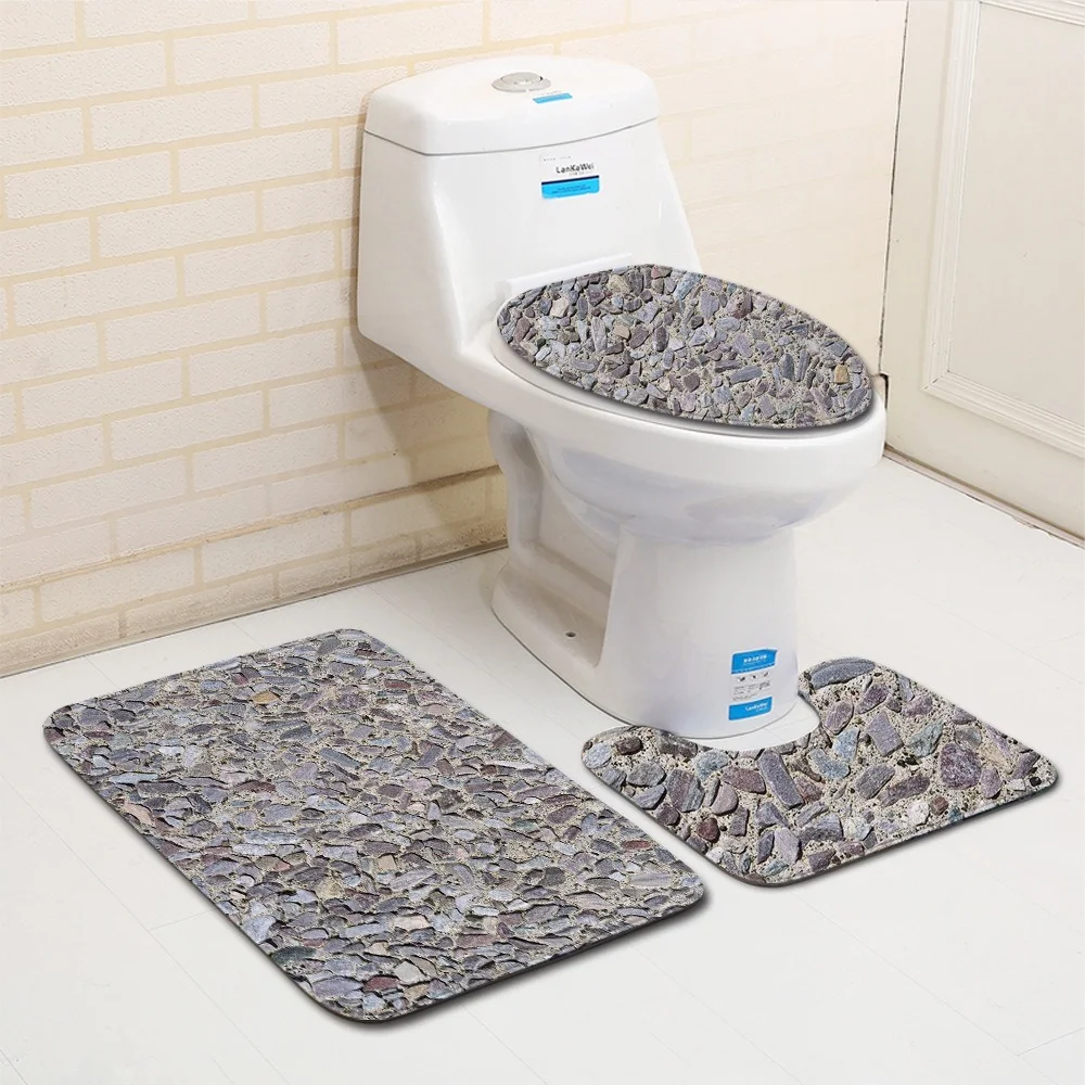 Набор ковриков для ванной комнаты с 3D камнями, Набор ковриков для ванной комнаты, Нескользящие коврики, наборы для ванной комнаты, набор из трех предметов для туалета, крышка для туалета, коврики