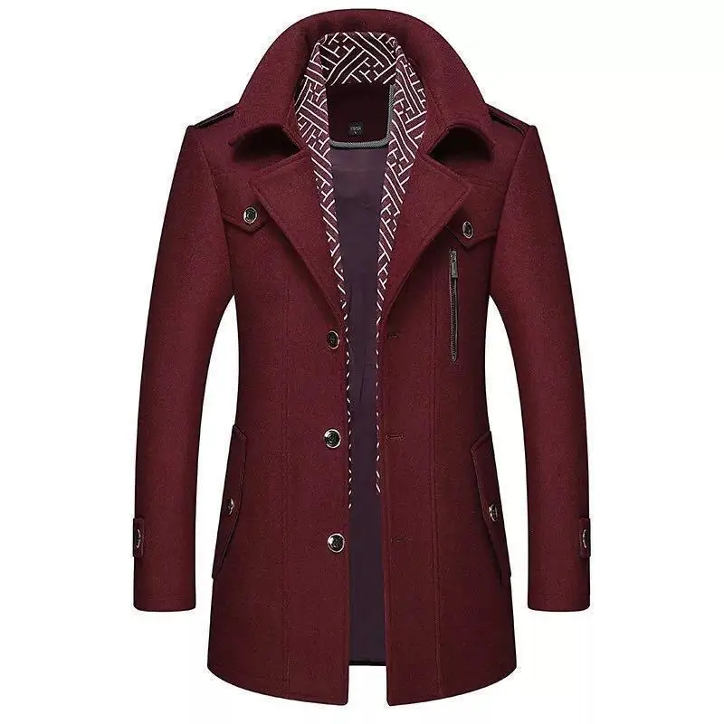 Зимнее шерстяное пальто мужское средней длины утепленное хлопковое приталенное пальто для мужчин среднего возраста и молодежи твидовая ветровка повседневное пальто