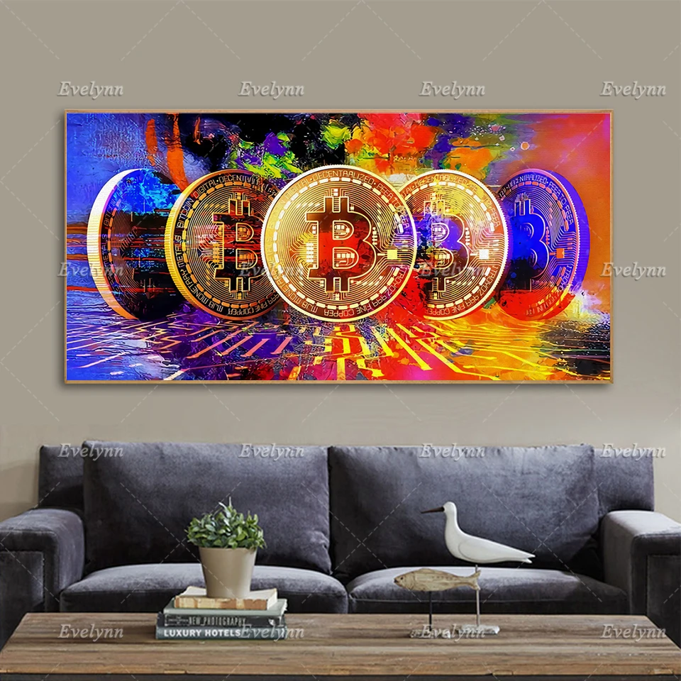 Современная Красочная картина маслом Биткоин на холсте, абстрактные настенные картины, криптовалюты, плакаты и принты, модульные картины, Декор