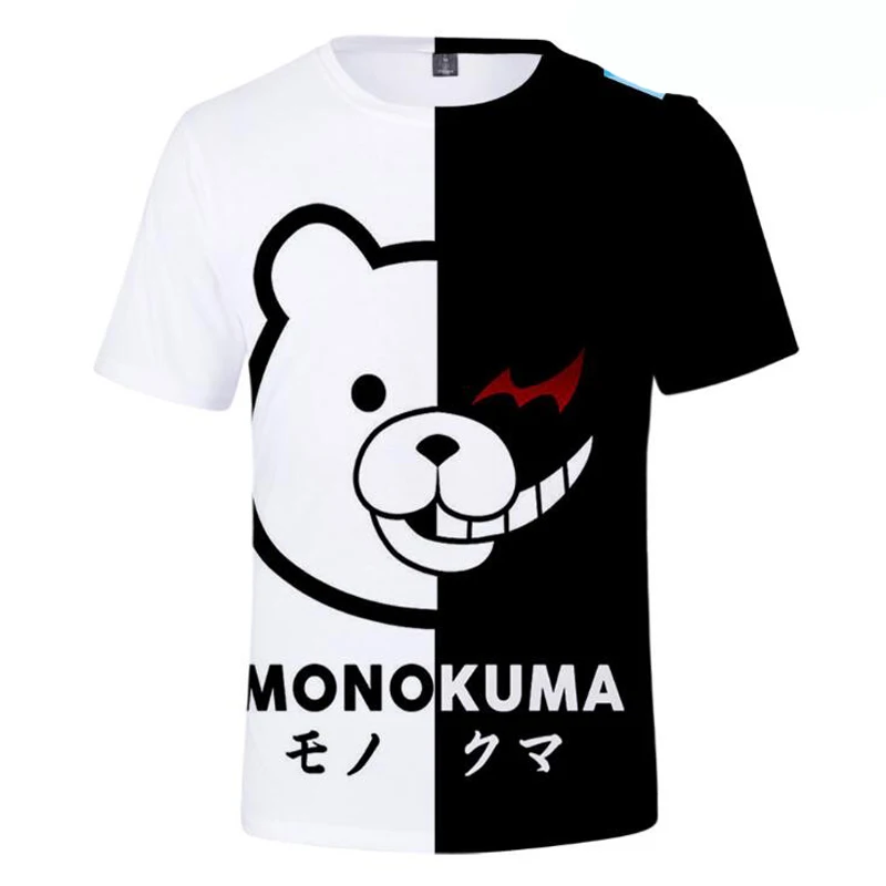 Футболка для косплея Monokuma Danganronpa для мужчин и женщин, милая 3d-футболка черного и белого медведя, летние топы, аниме одежда, уличная одежда