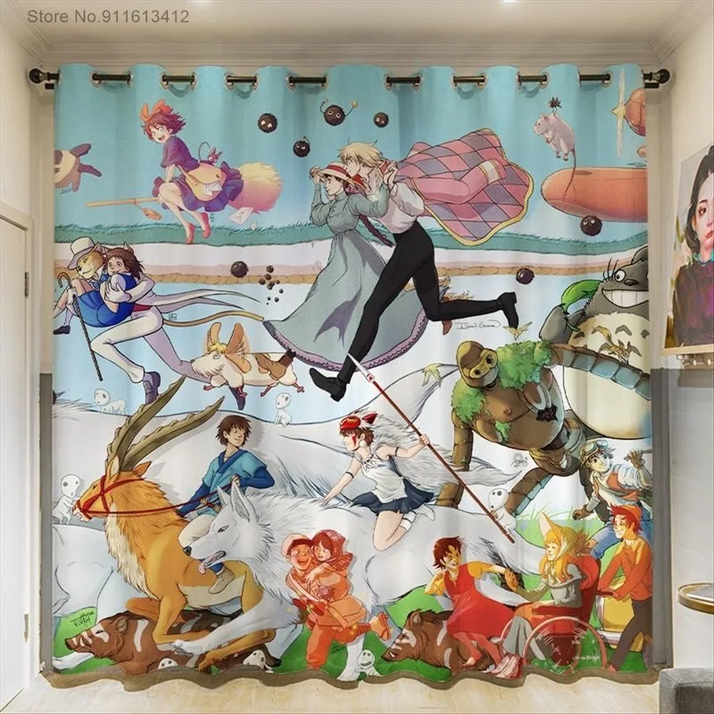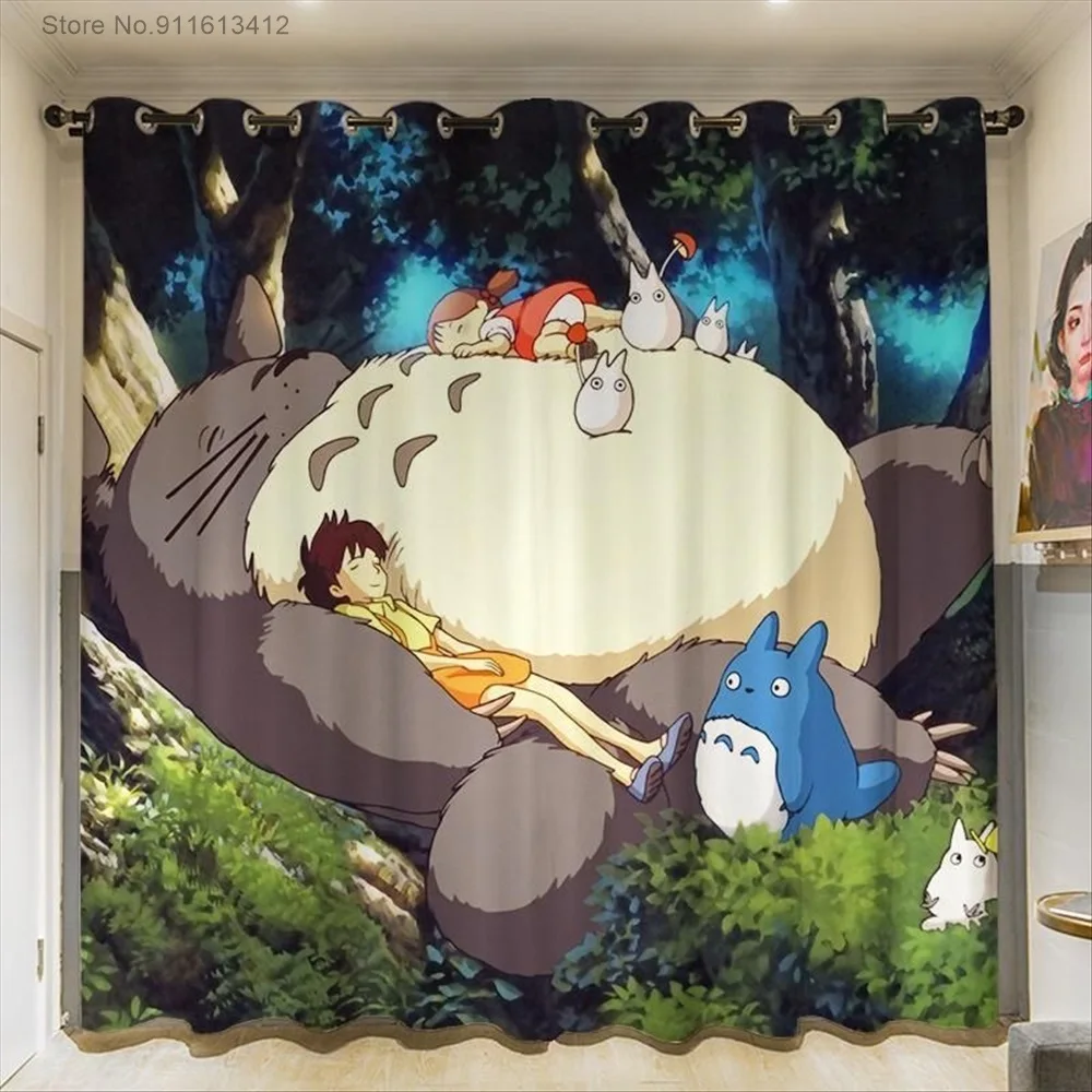 Затемняющие шторы с рисунком из мультфильма для детской, гостиной, спальни, аниме, сверхтонкие, занавески "Тоторо"