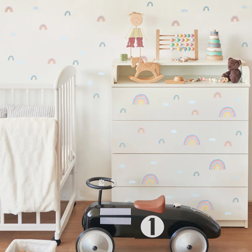 Съемные радужные облакообразные настенные наклейки для детской комнаты, детской спальни, Настенный декор Windoor, наклейки для гардероба, водонепроницаемые ПВХ наклейки