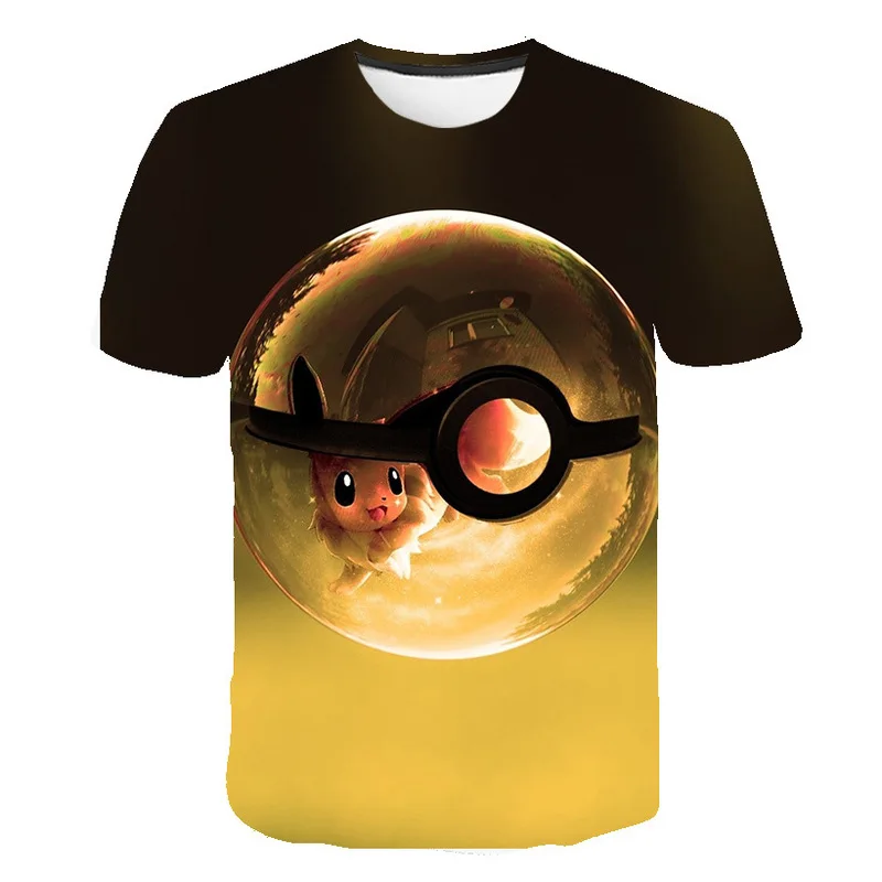 Летняя Модная рубашка, футболка с рисунком Пикачу, футболка для девочек, забавная футболка с круглым вырезом для мальчиков и девочек, Топ