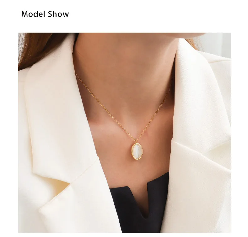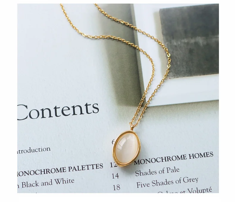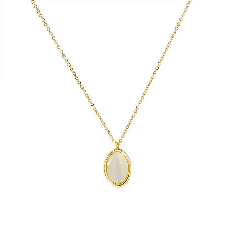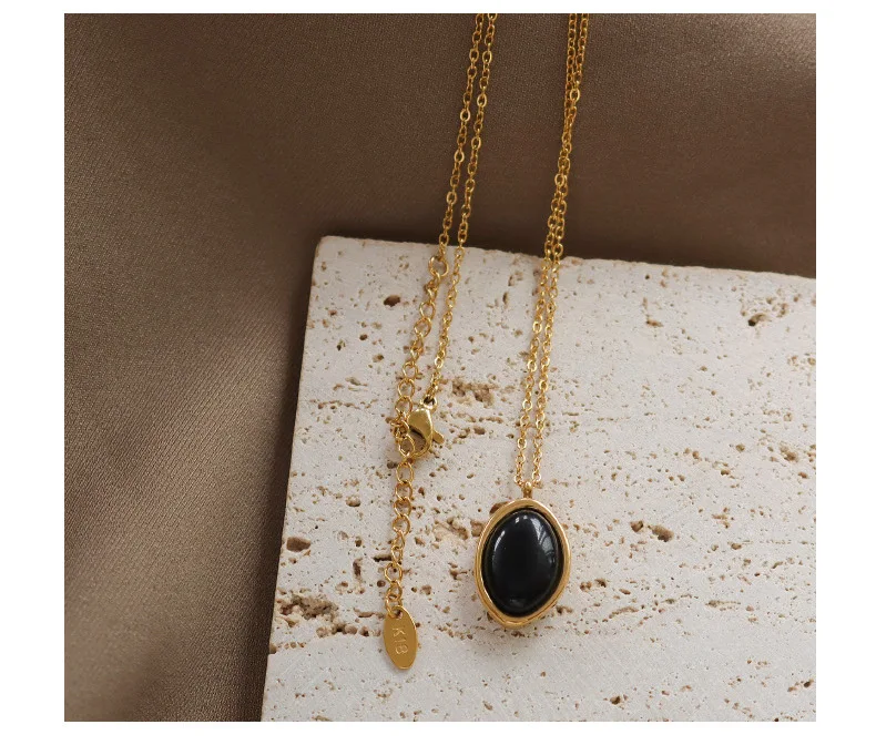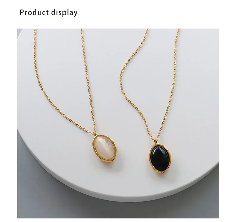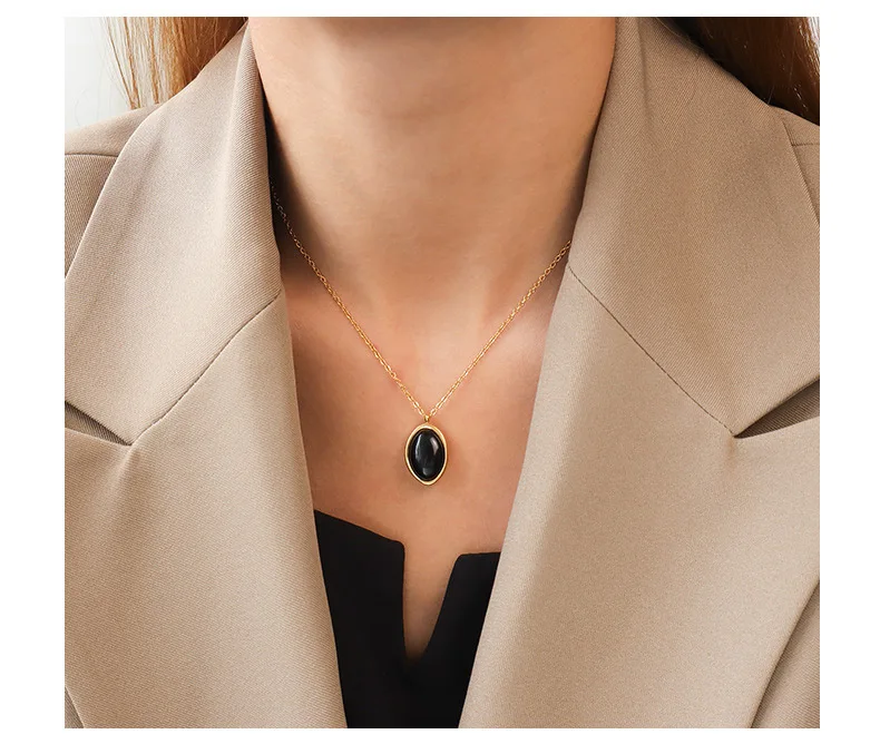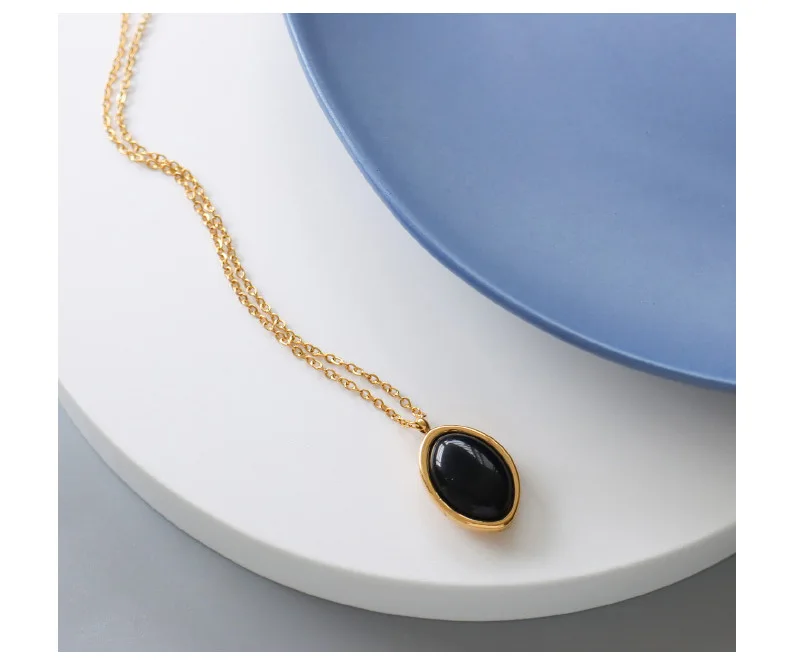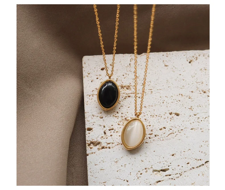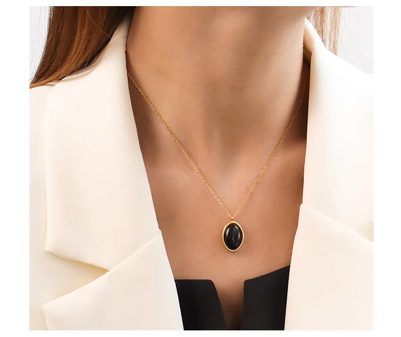Женское винтажное ожерелье из нержавеющей стали, черное овальное ожерелье с черным ониксом и овальным белым опалом, трендовая бижутерия 2021