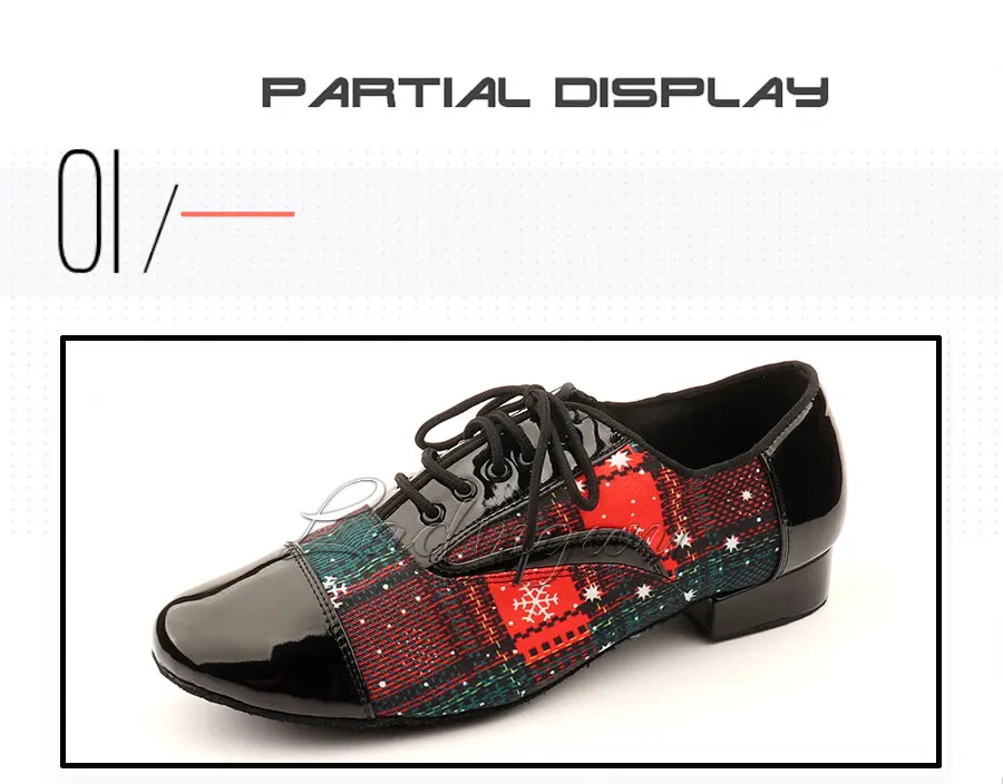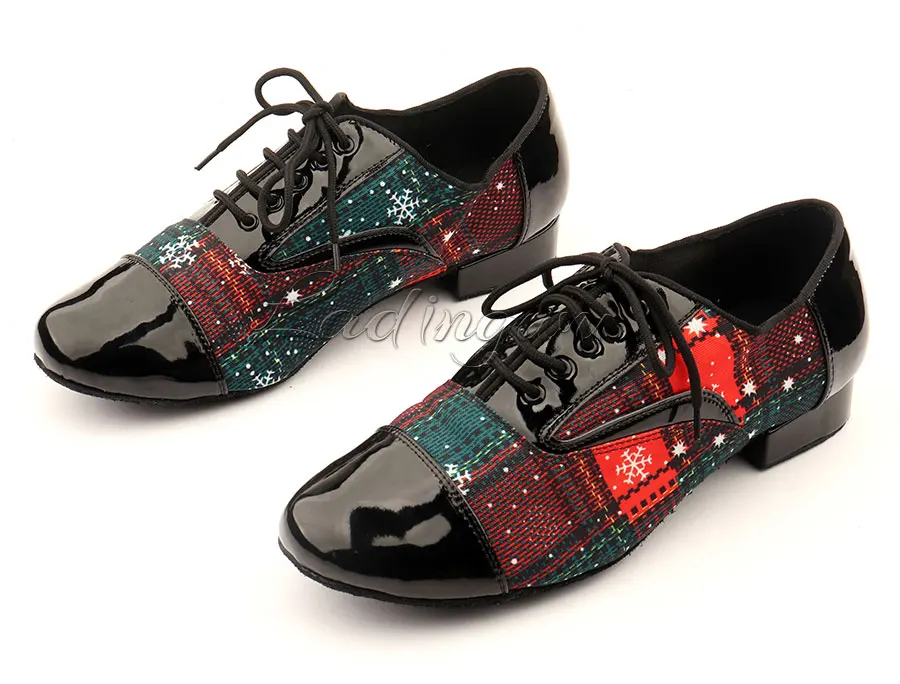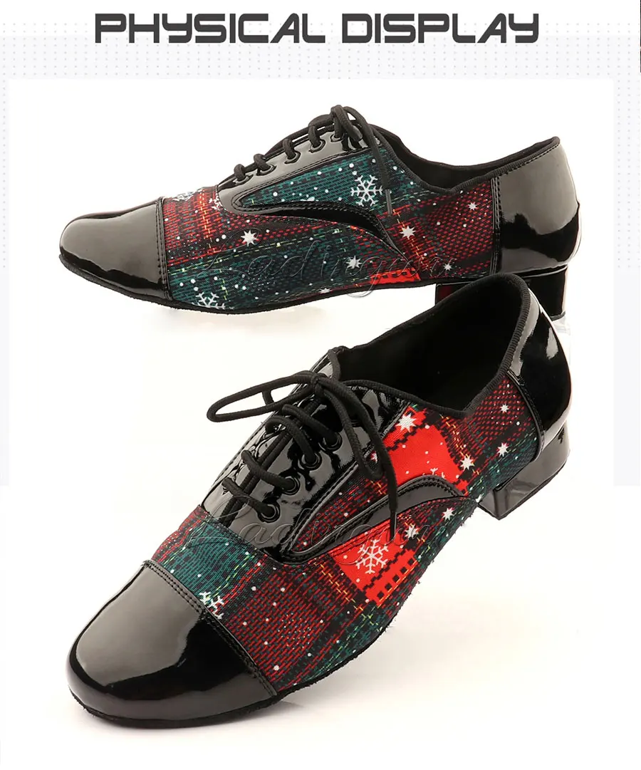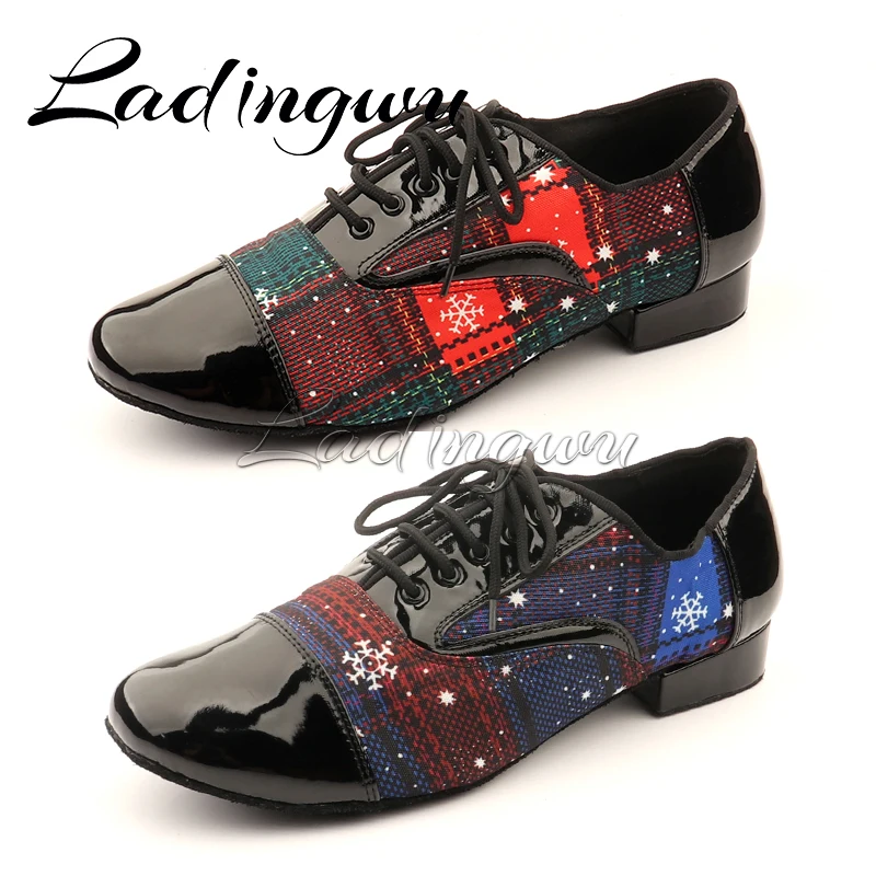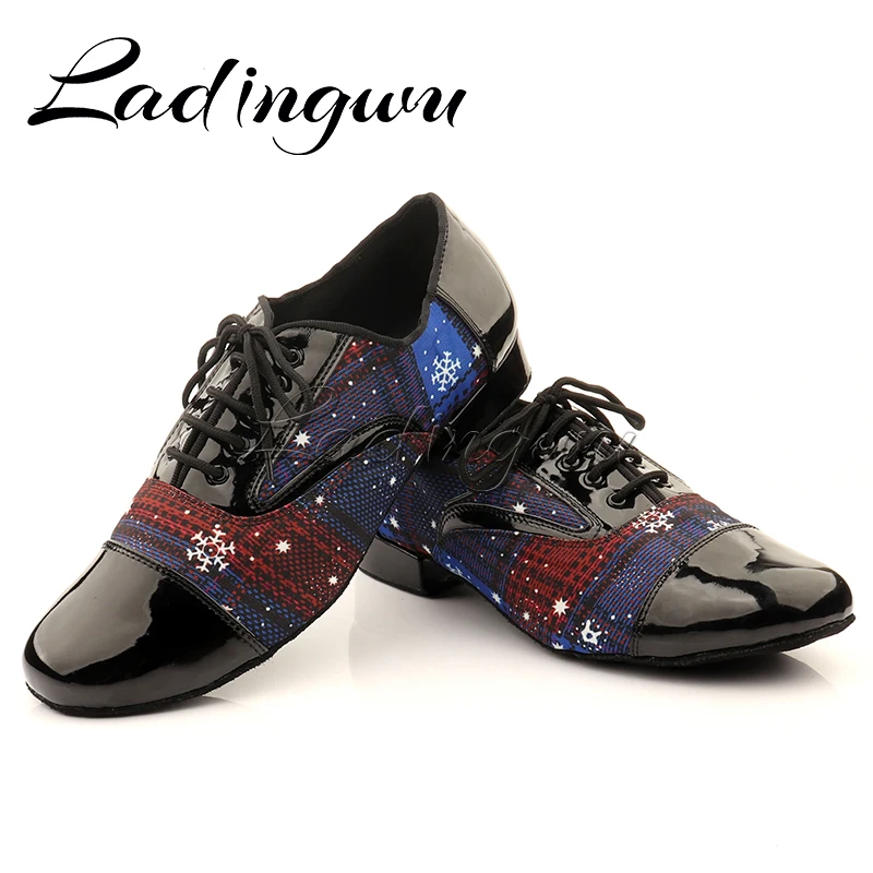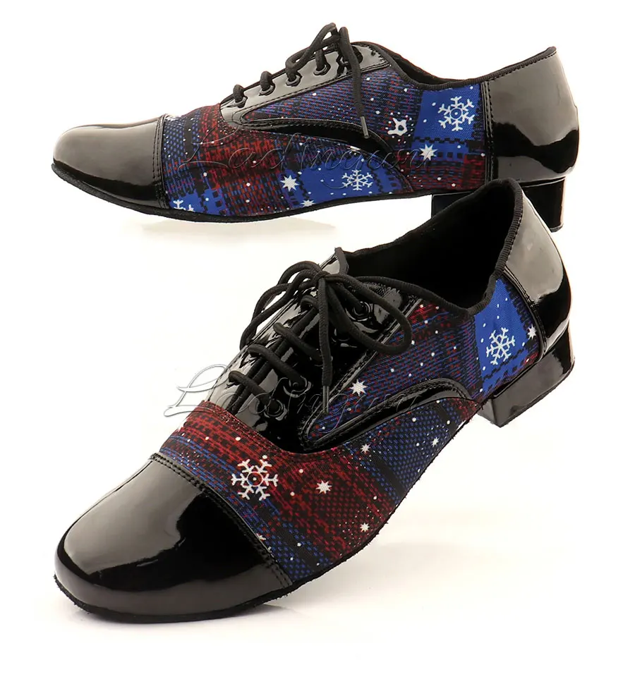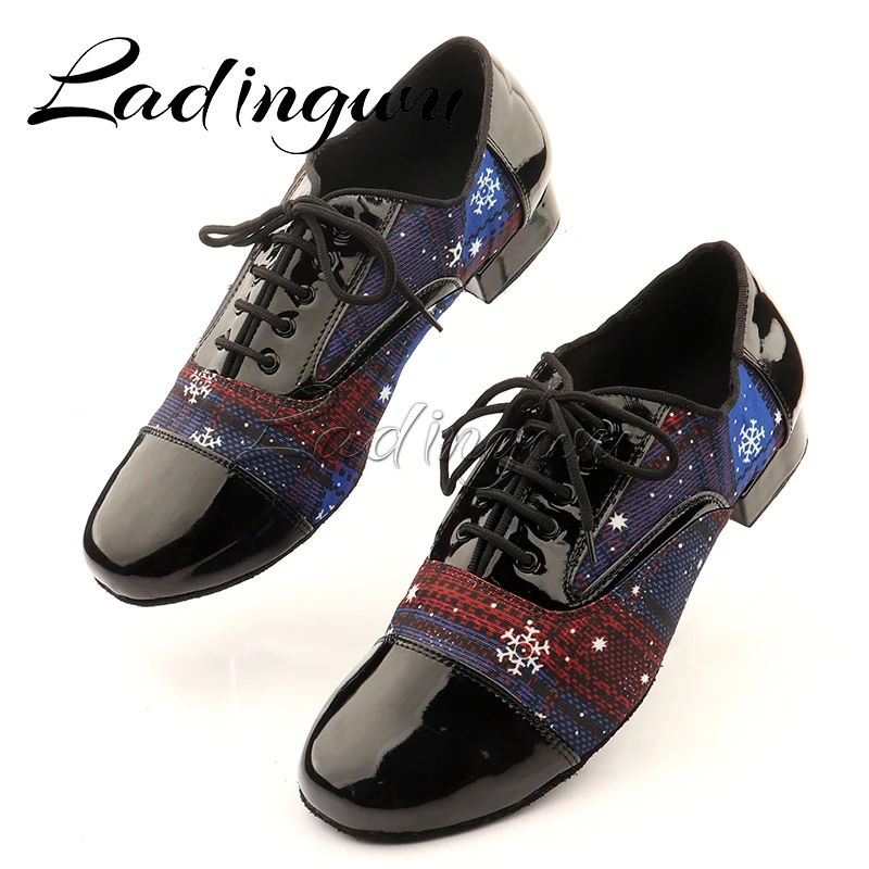 Туфли Ladingwu мужские на низком каблуке, обувь для латиноамериканских танцев, обувь для сальсы, Танго, бальных танцев, из искусственной кожи и денима, синие рождественские каракули