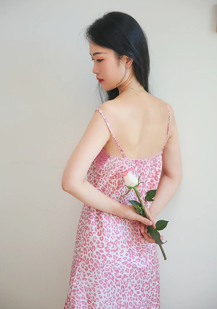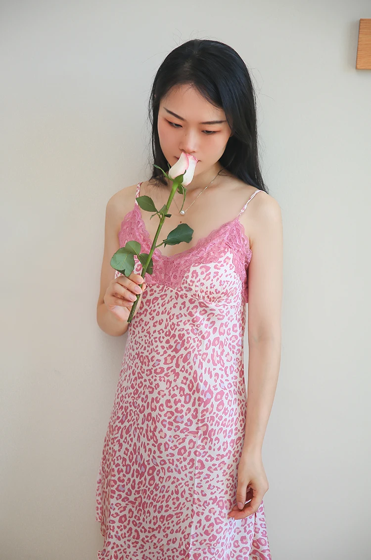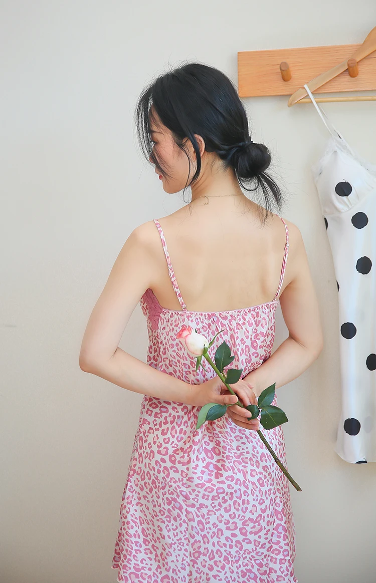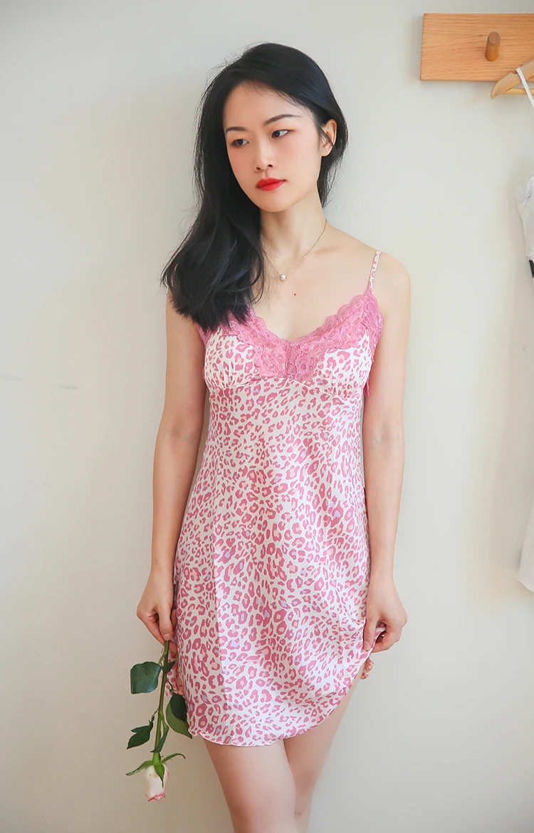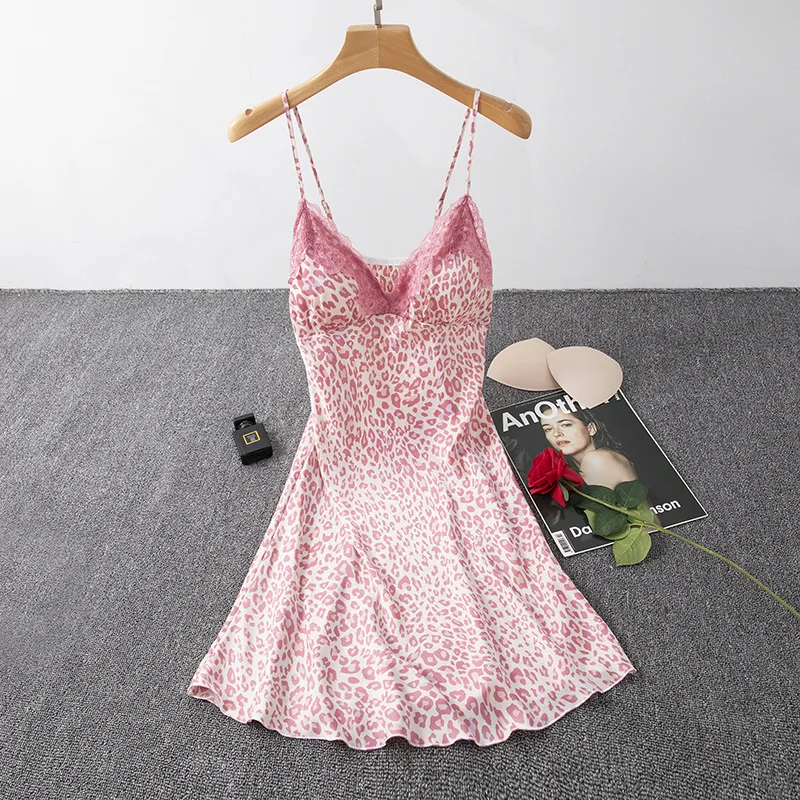 Сексуальное нижнее белье, ночные рубашки из искусственного шелка, атласная одежда для сна, женская ночная рубашка без рукавов с V-образным вырезом, кружевная банная одежда, бюстгальтер с леопардовым принтом